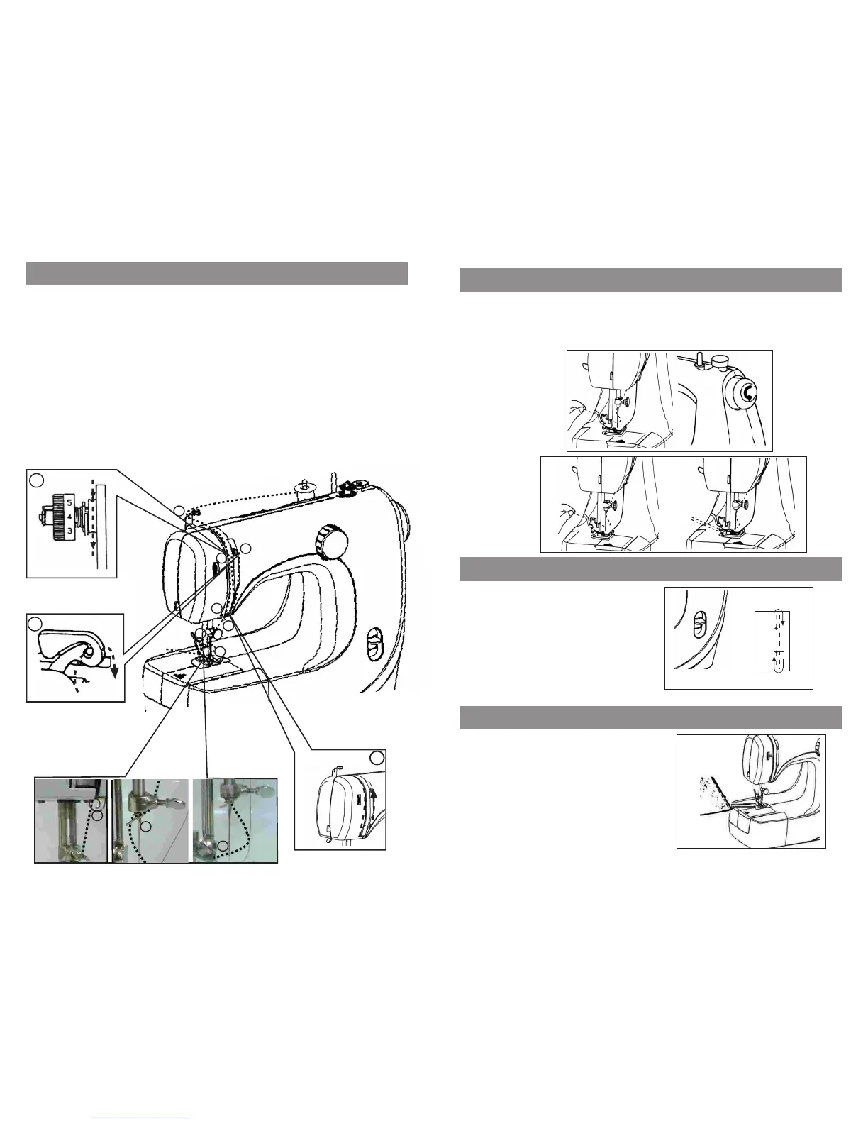 6.Drawing down the thread and through the lower guide from back to front.