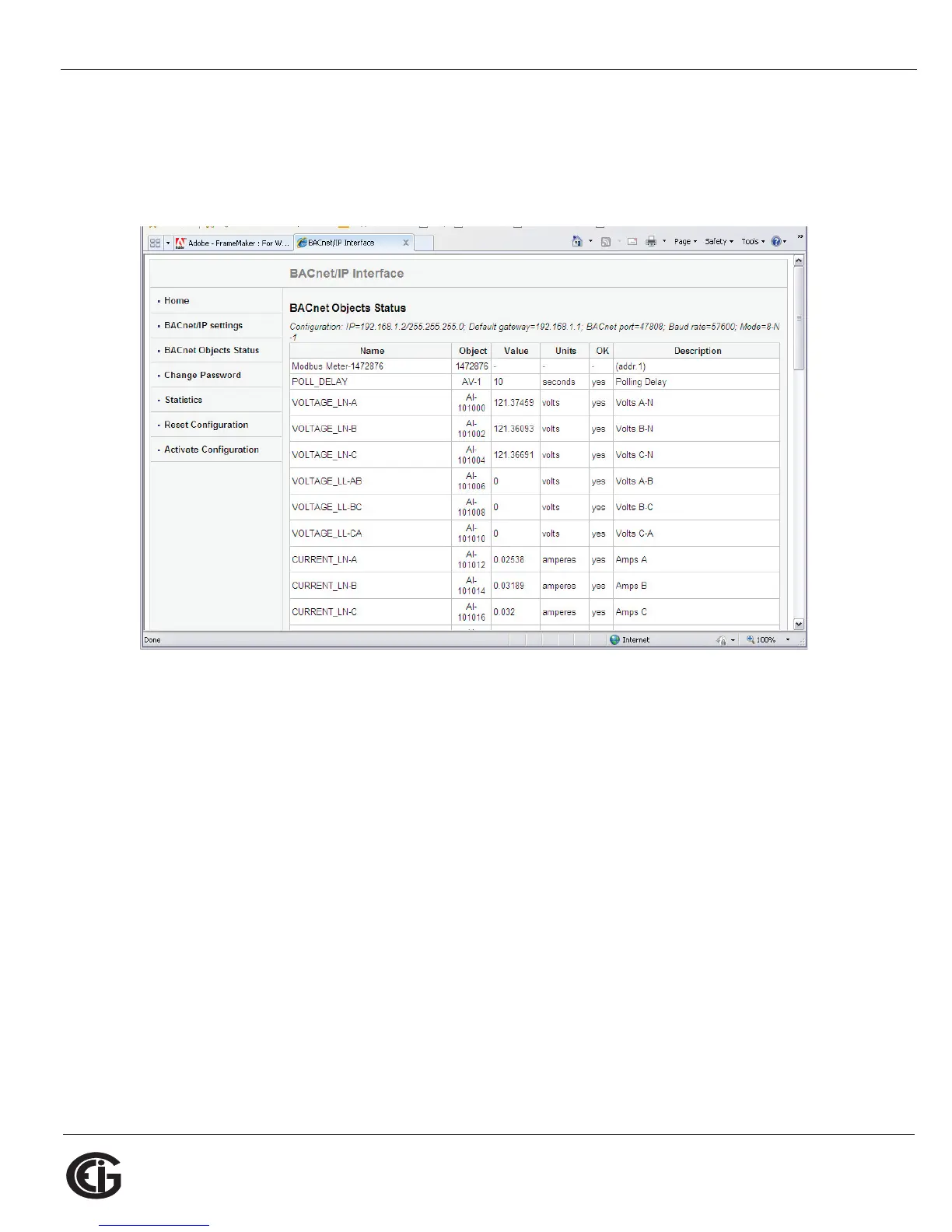meter’s embedded BACnet objects. You will see a screen like the one shown below.