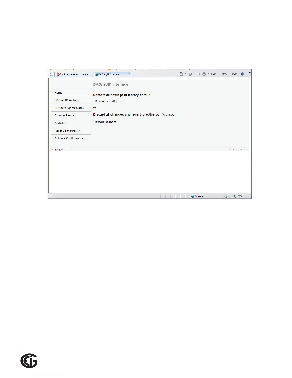 uration back to its default or last configuration. You will see the page shown below.