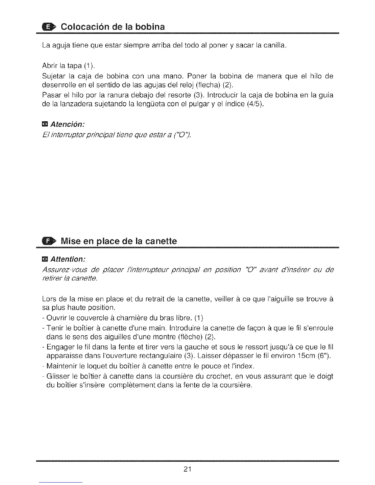 La aguja tiene que estar siempre arriba det todo at poner y sacar ta canitta.