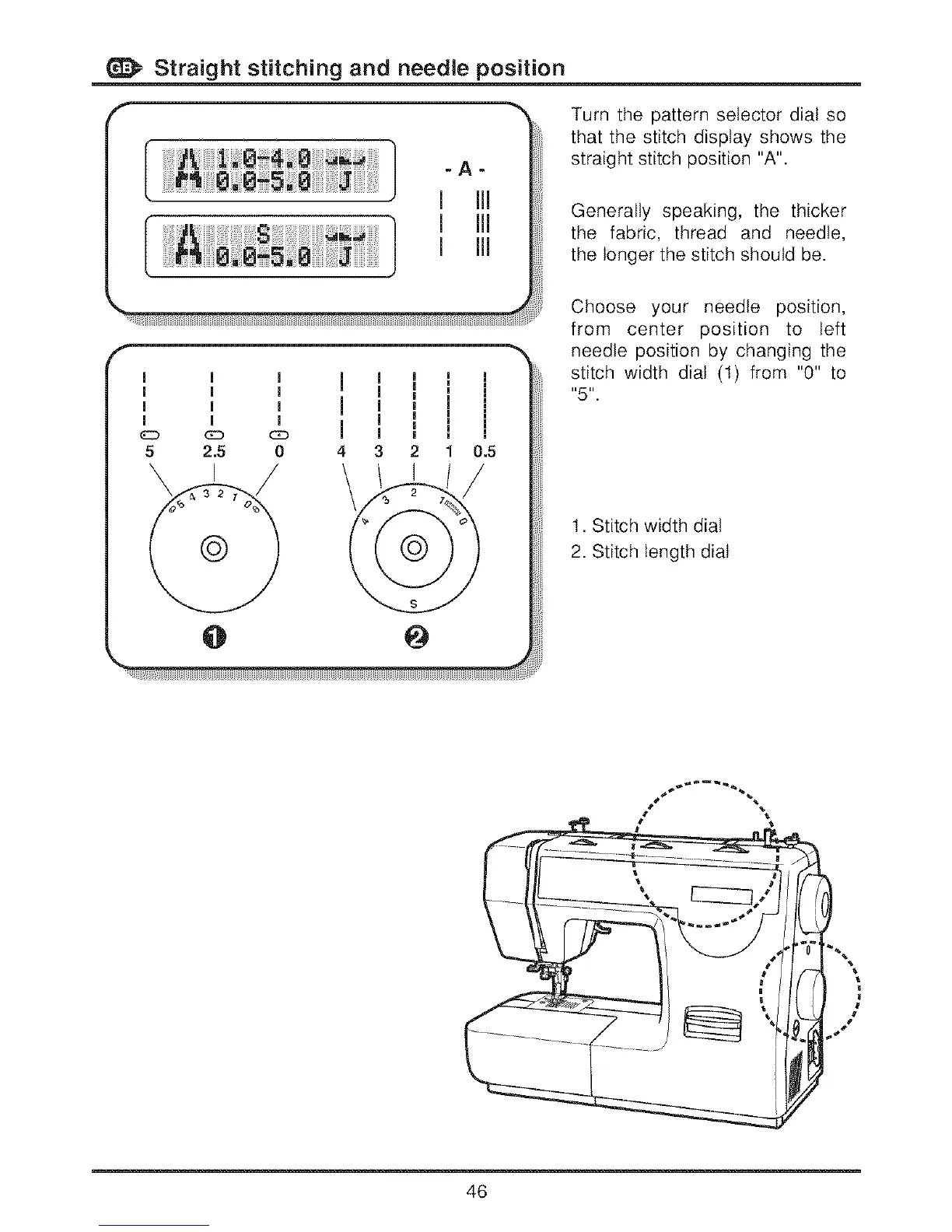 stitch width dial (1) from "0" to