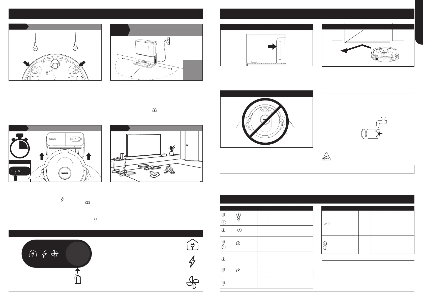 • Før rengjøring fjern ledninger og fjern små hindringer