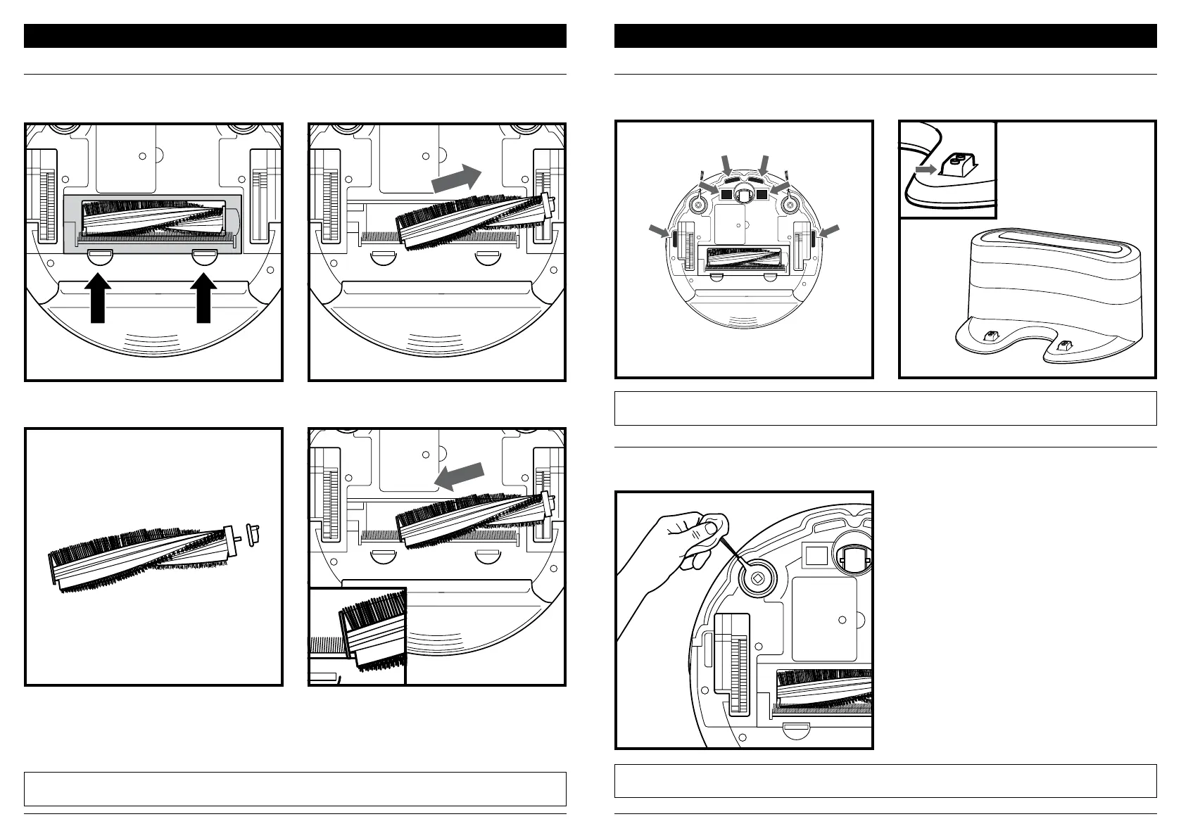 brosse de nettoyage, essuyez doucement les capteurs et les tampons situés sur la partie inférieure du robot.