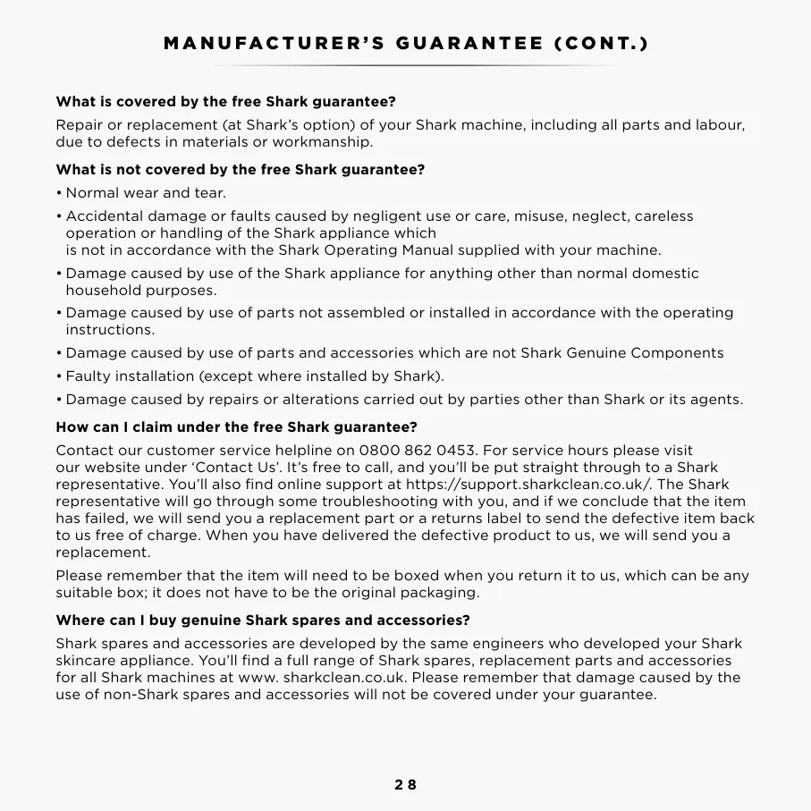 use of non-Shark spares and accessories will not be covered under your guarantee.