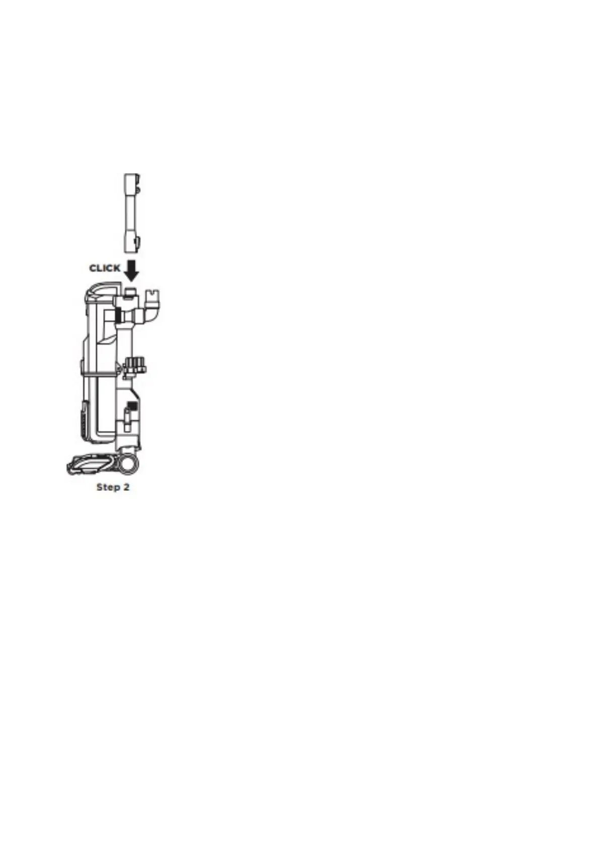 1. Place Motorized Floor Nozzle on floor and attach Pod, pressing it in until it clicks securely into place.
