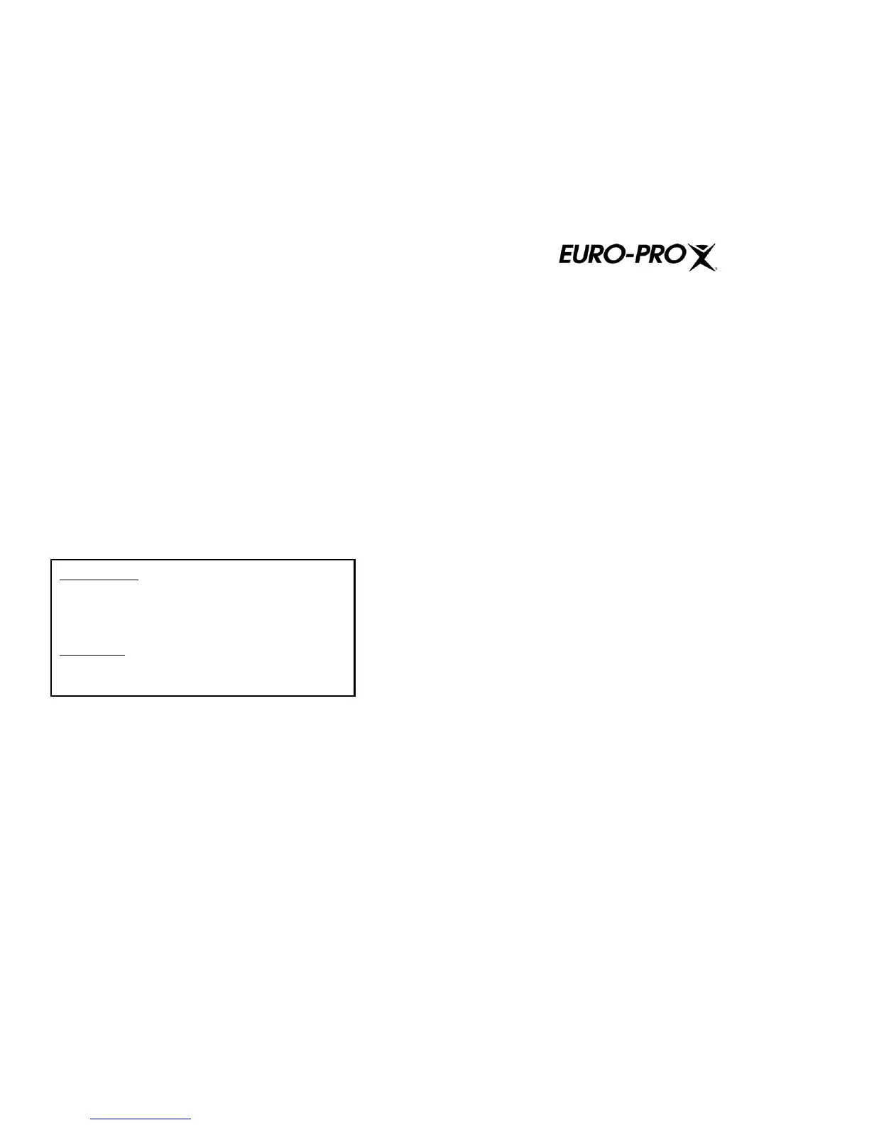 In Canada: EURO-PRO Corporation, 4400 Bois Franc, St. Laurent, QC, H4S 1A7