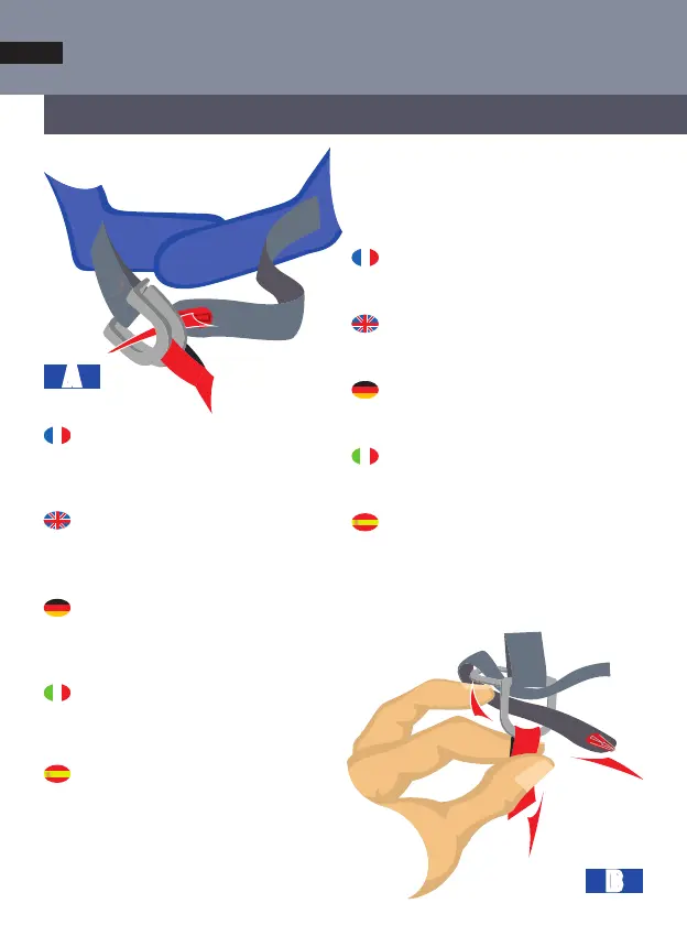 B - Then bring the end of the chin strap