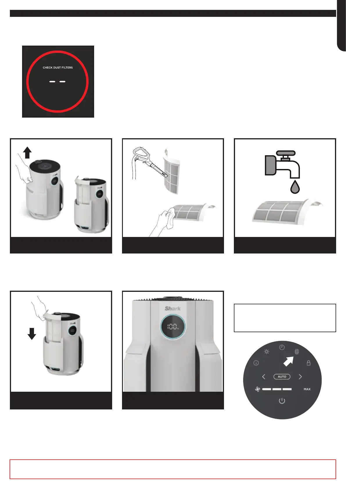 Cuando aparezca el mensaje «Check Dust Filters» (Comprobar filtros de polvo) en la