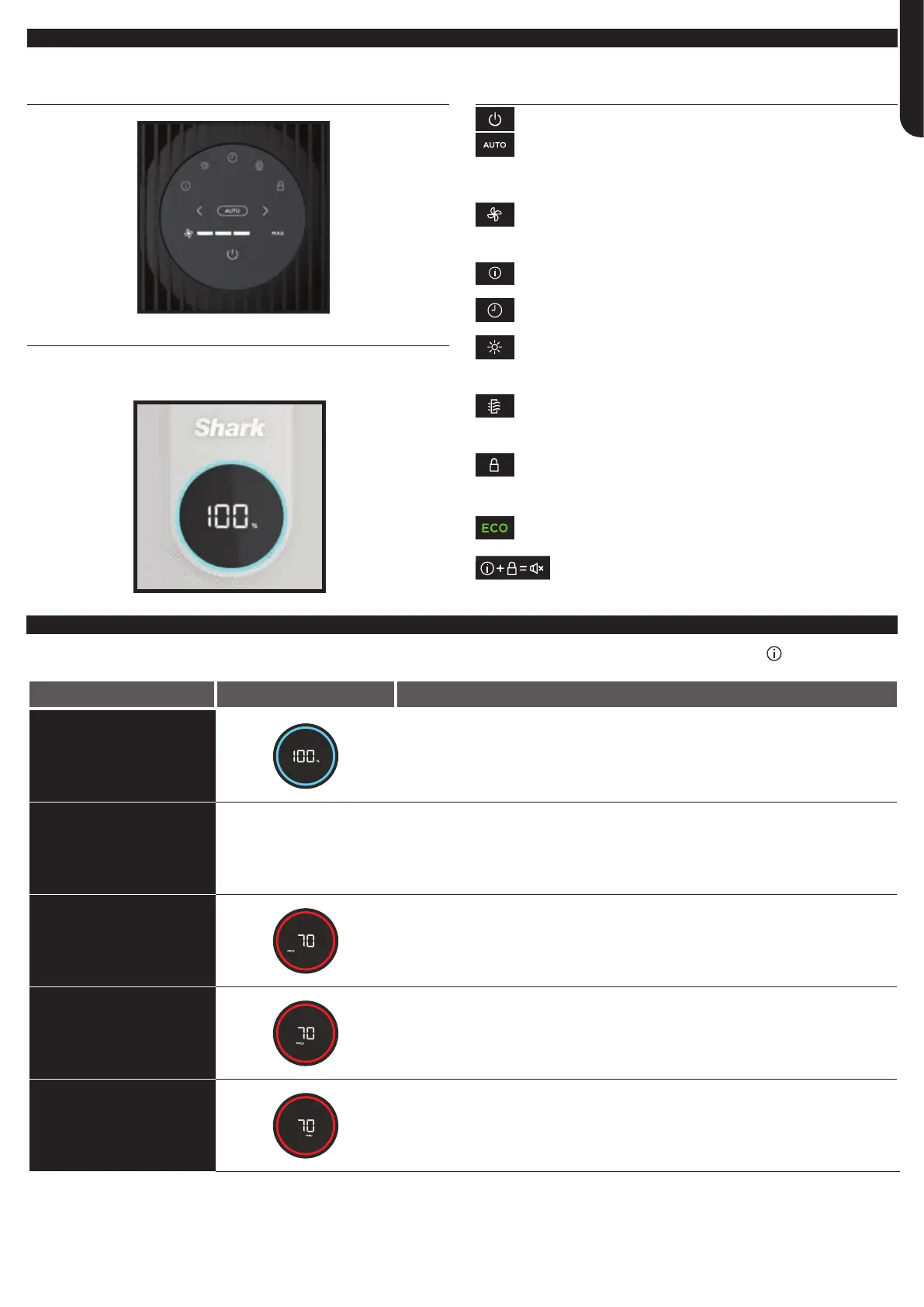 Den indbyggede sensor registrerer din luftrensningsstatus for at give dig oplysninger i realtid. Brug LUFTINFO-knappen til at skifte
