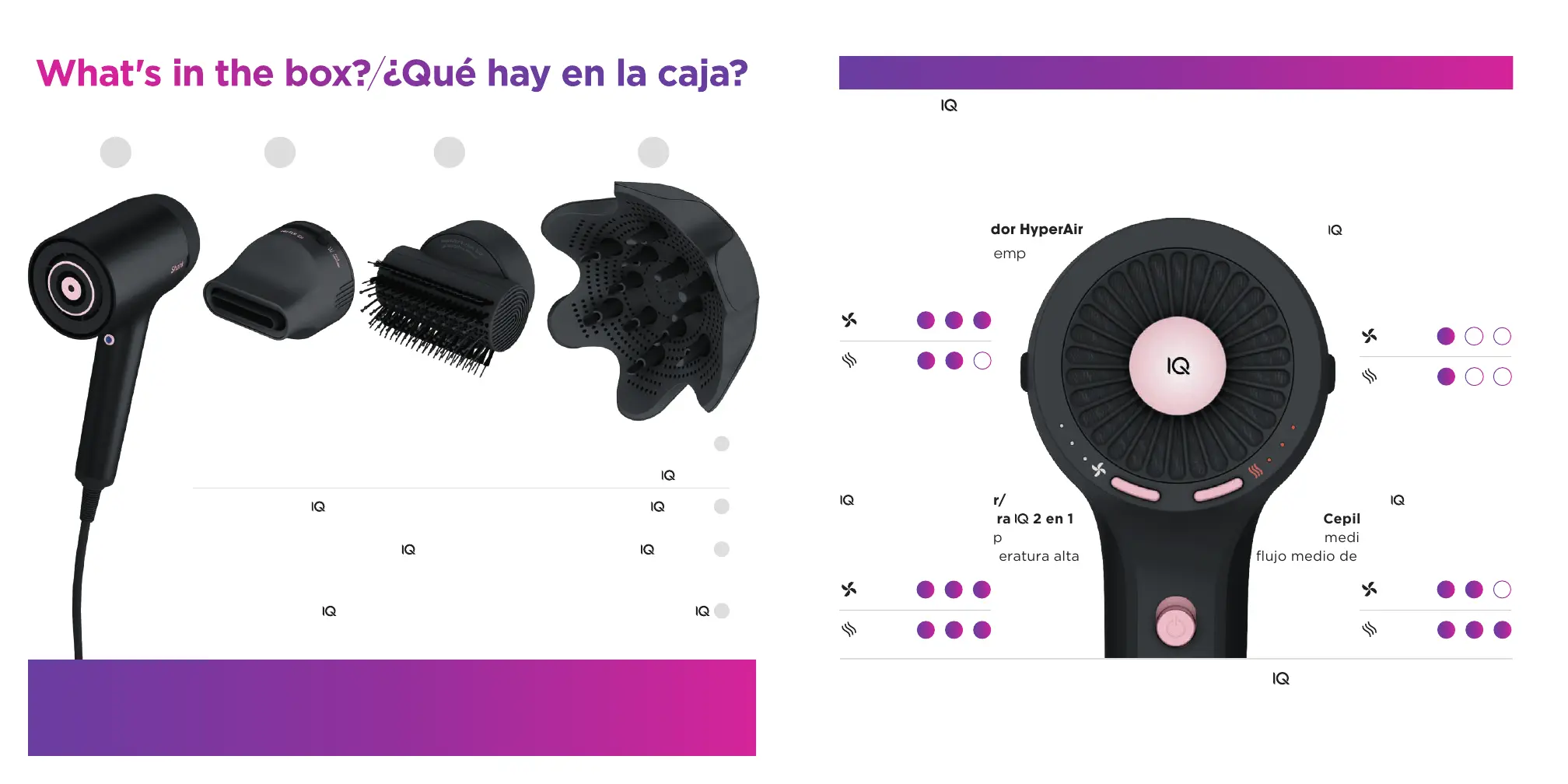 El logotipo de IQ en la parte posterior del secador se