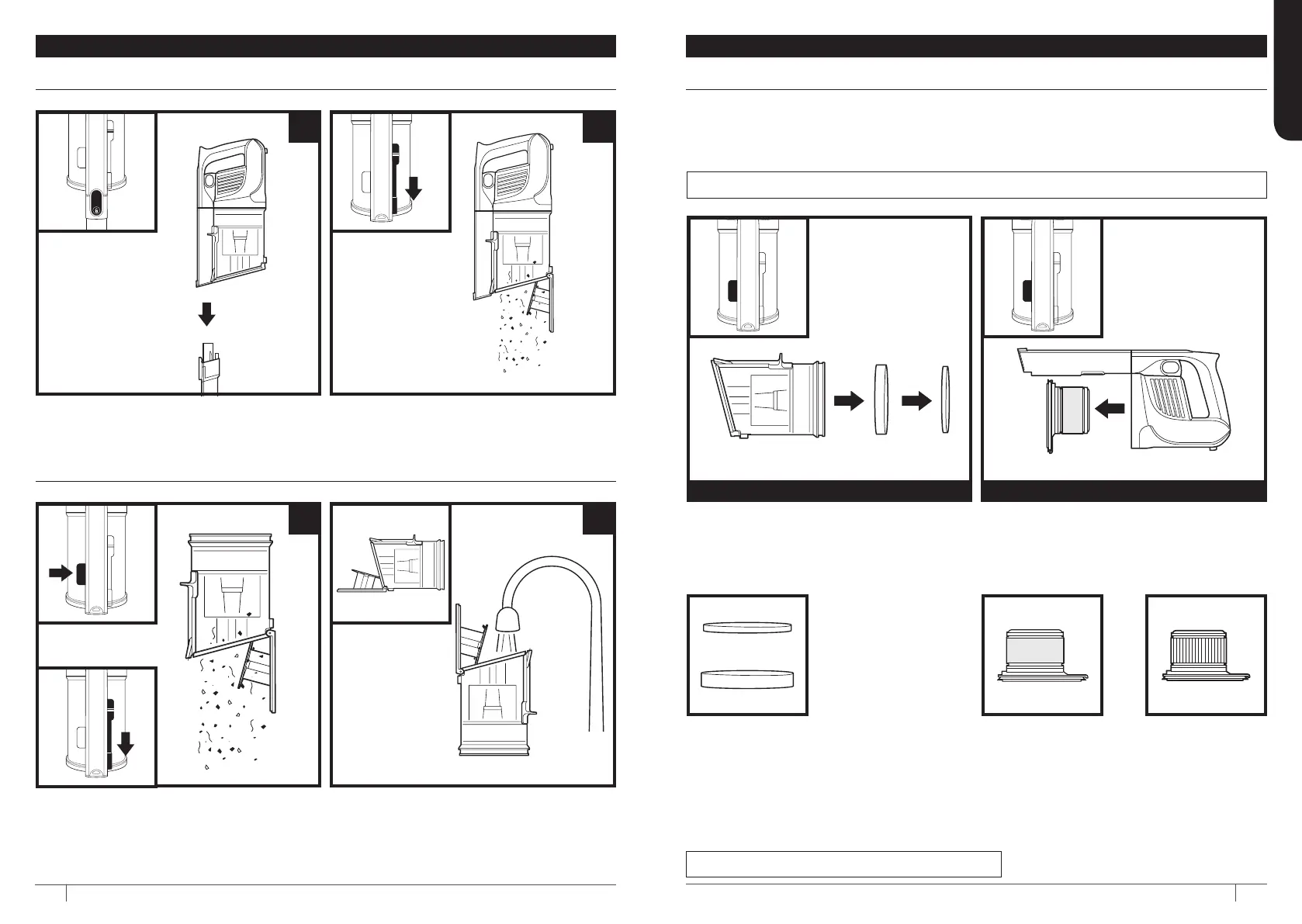 Fjern støvkoppen. Trekk etter-motor-filtrene ut av