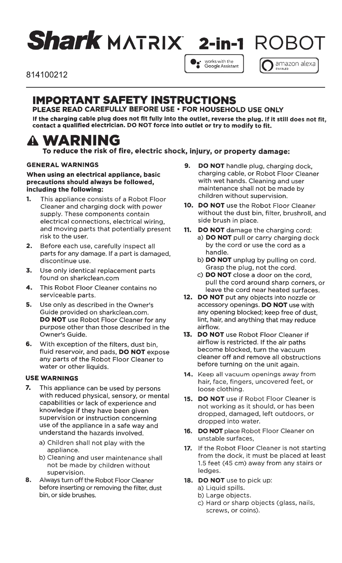 DO NOT use if Robot Floor Cleaner is