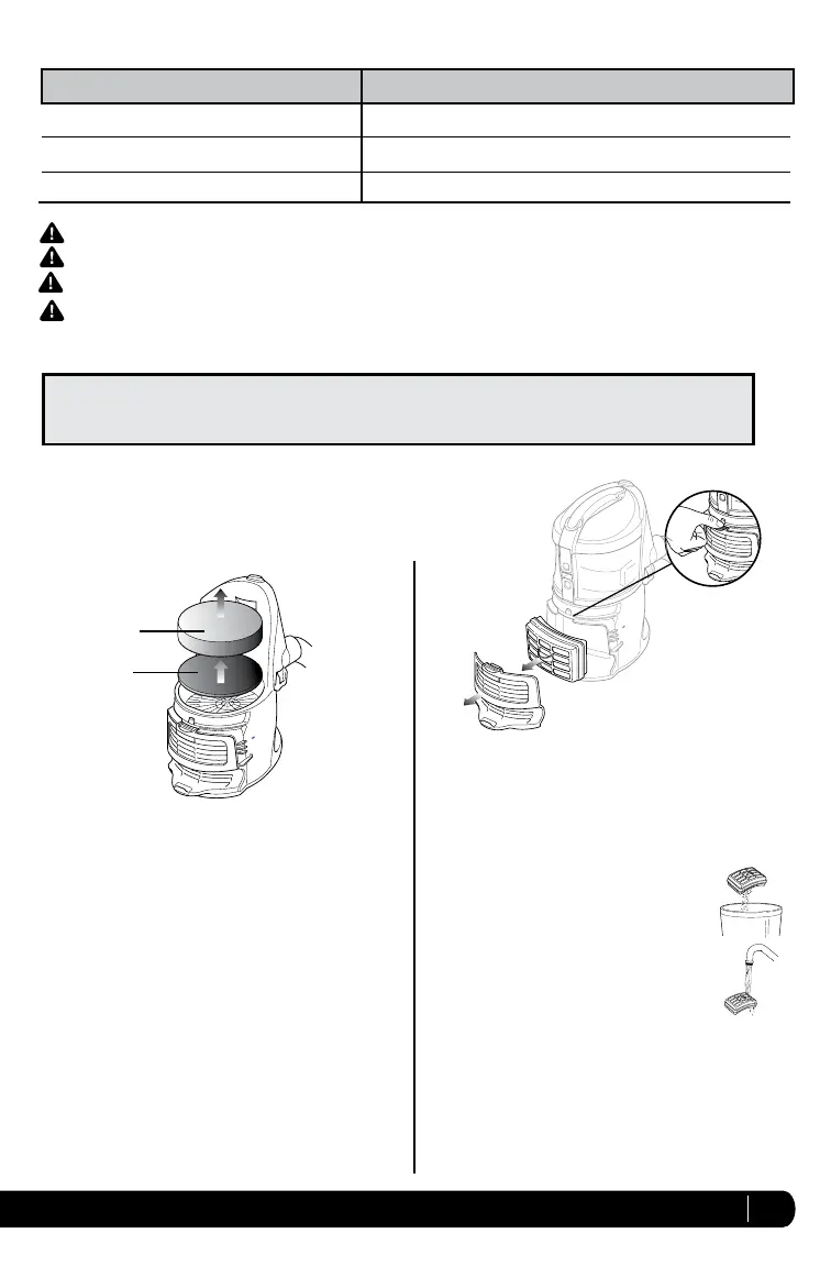 IMPORTANT: Loss of Suction may occur if foam/felt filter is not cleaned every month. Rinse and allow