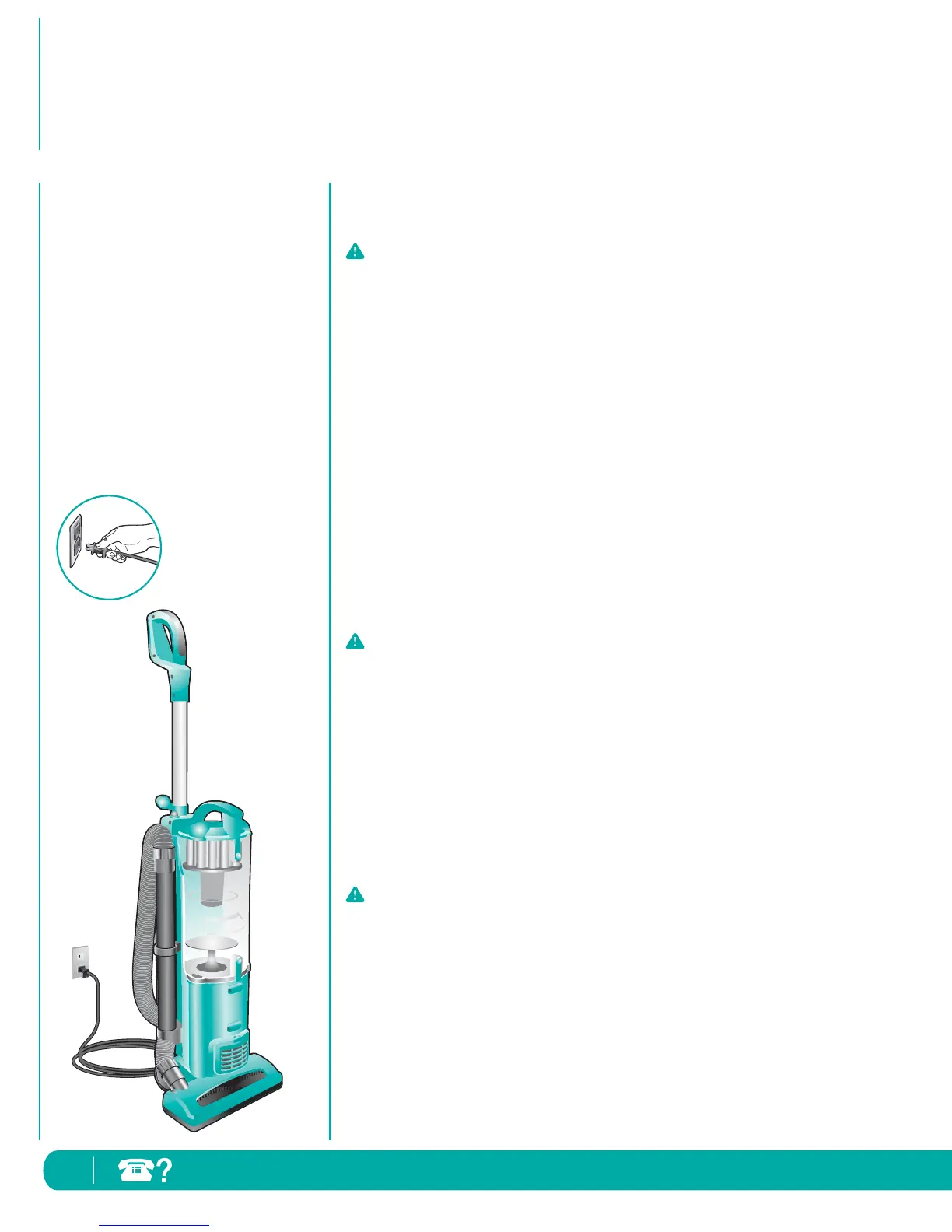 Turn off all controls before plugging or unplugging vacuum cleaner.