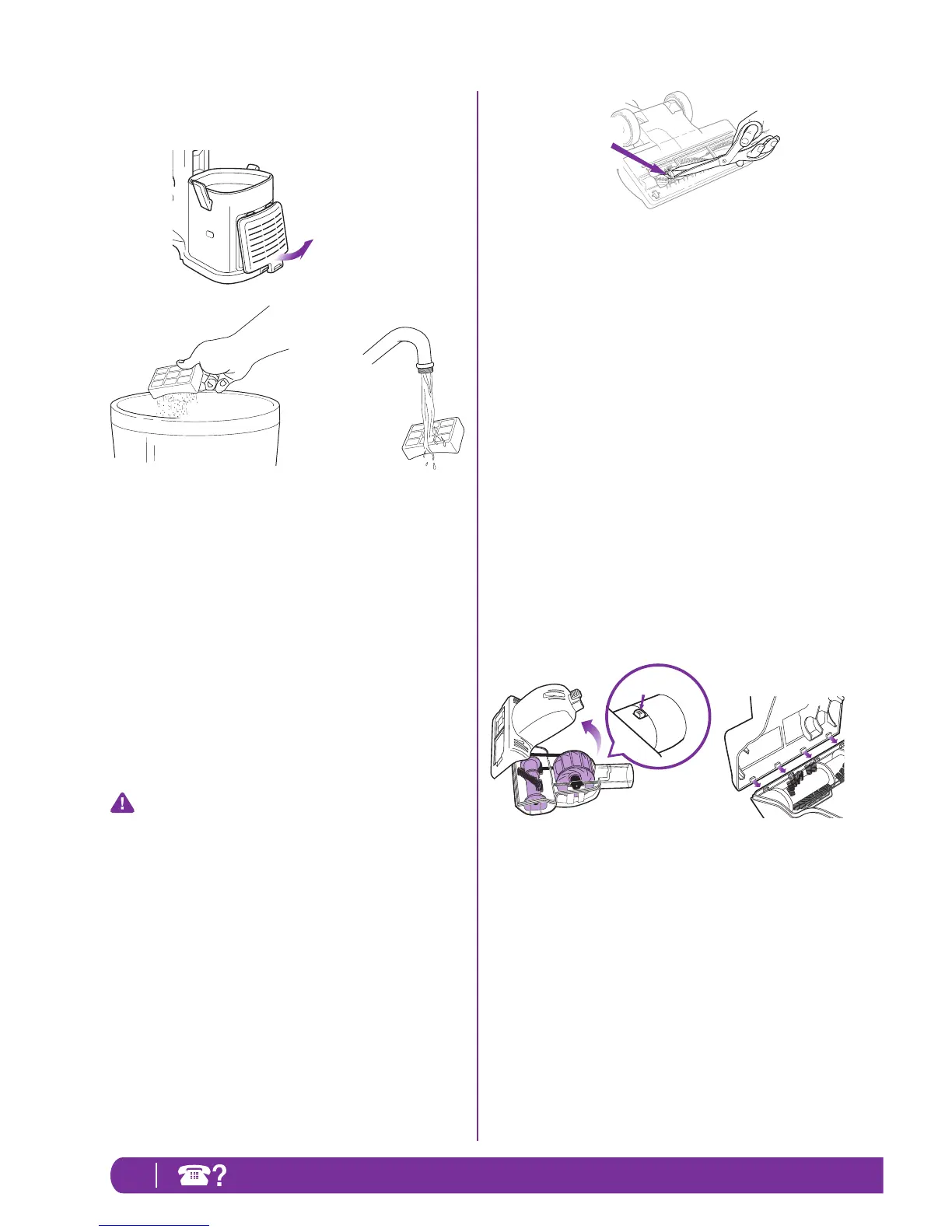 1 Retirez le couvercle du filtre à l’avant de l’aspirateur