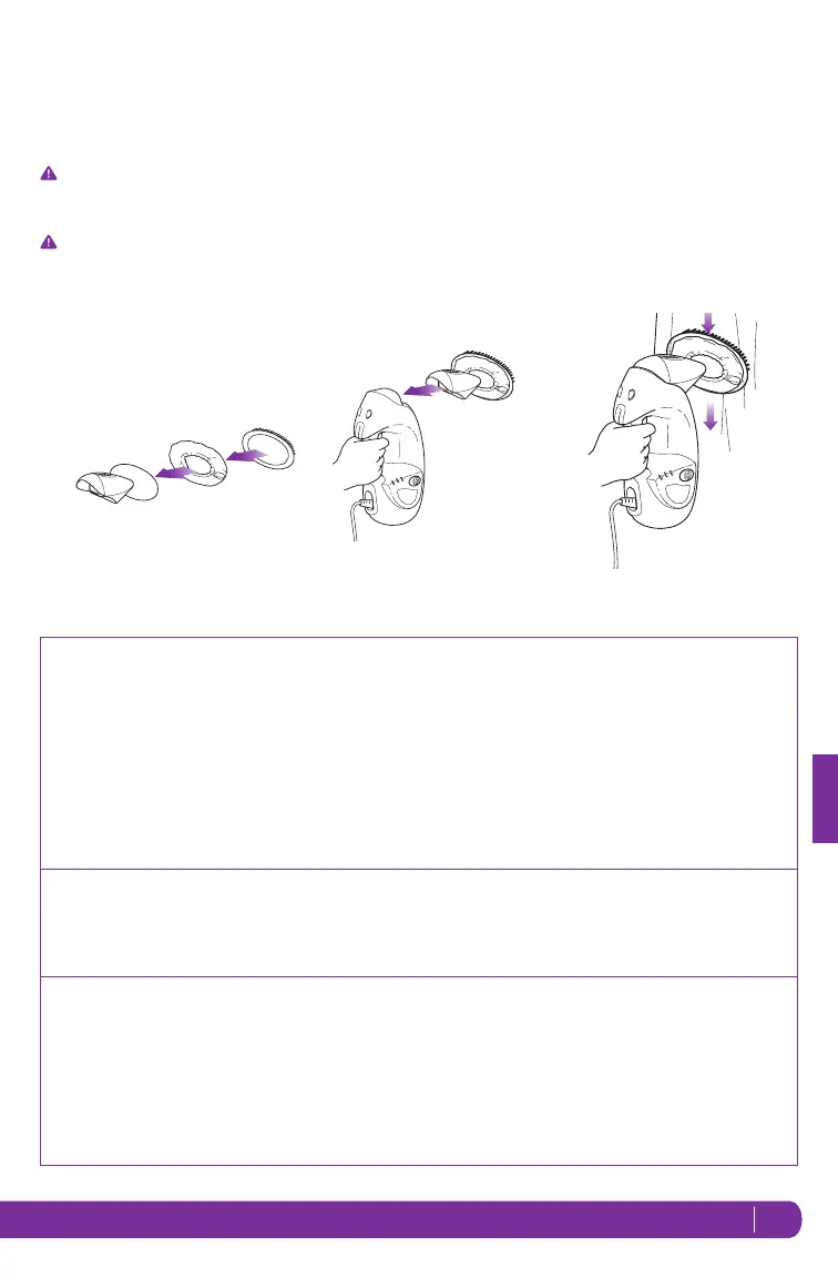 • Use la presilla de color lavanda al lado de la cofia para deslizarla sobre la abertura de la boquilla del vaporizador