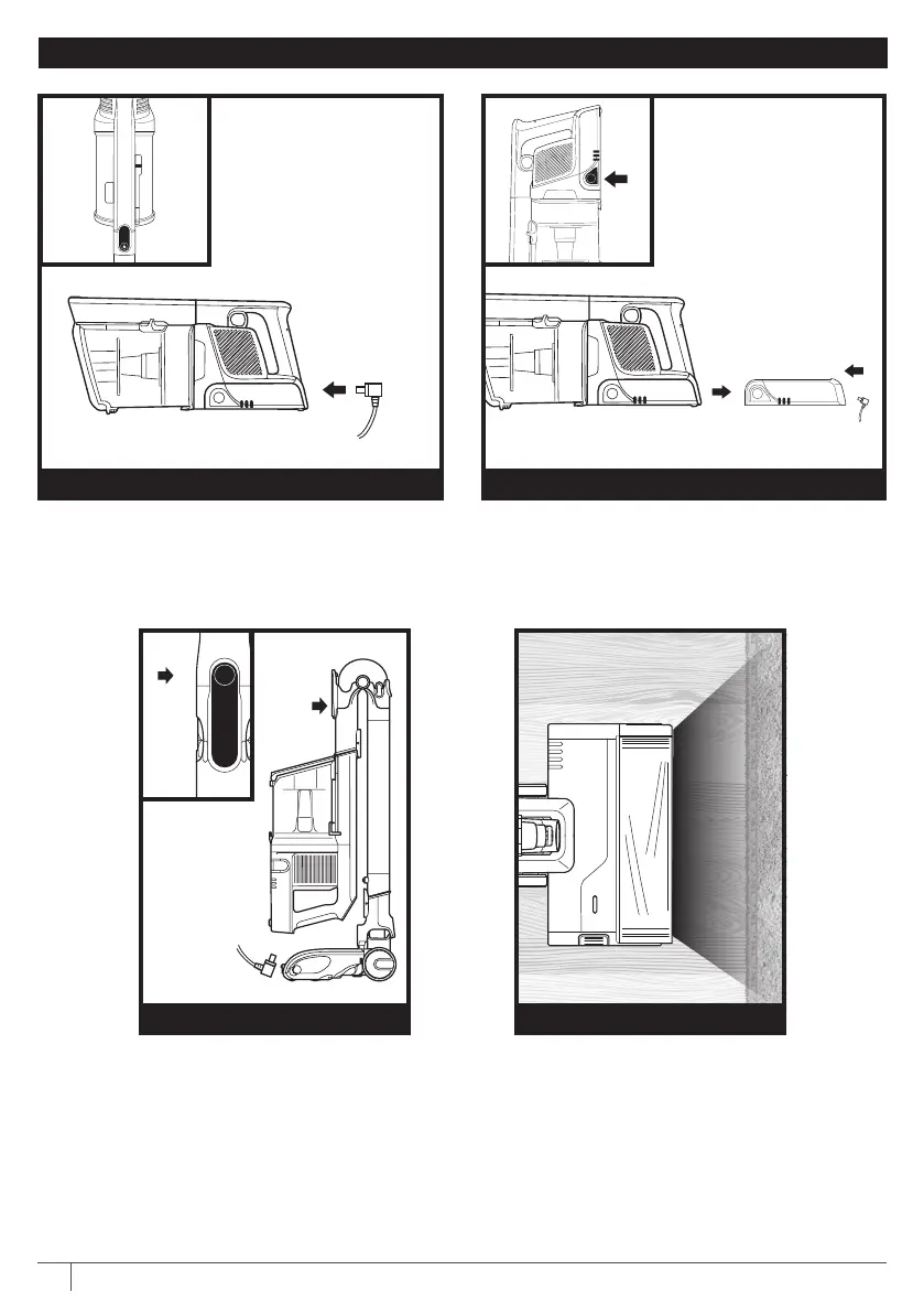 To remove the battery from vacuum, press the
