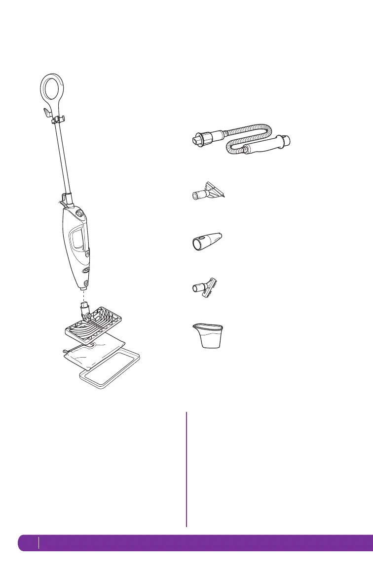 Når du setter sammen dampmoppen kan det være litt vann i eller rundt vanntanken. Dette er fordi vi tester alle våre