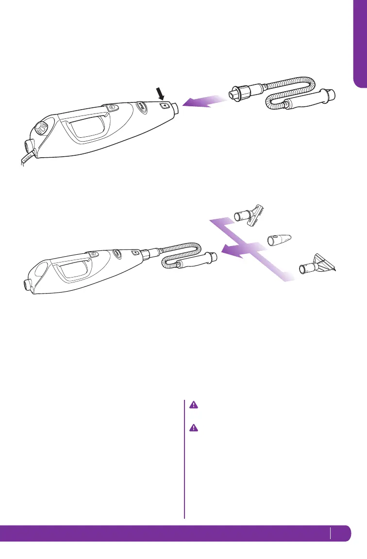 FORSIKTIG: Ikke bruk tilbehørsslangen uten at den