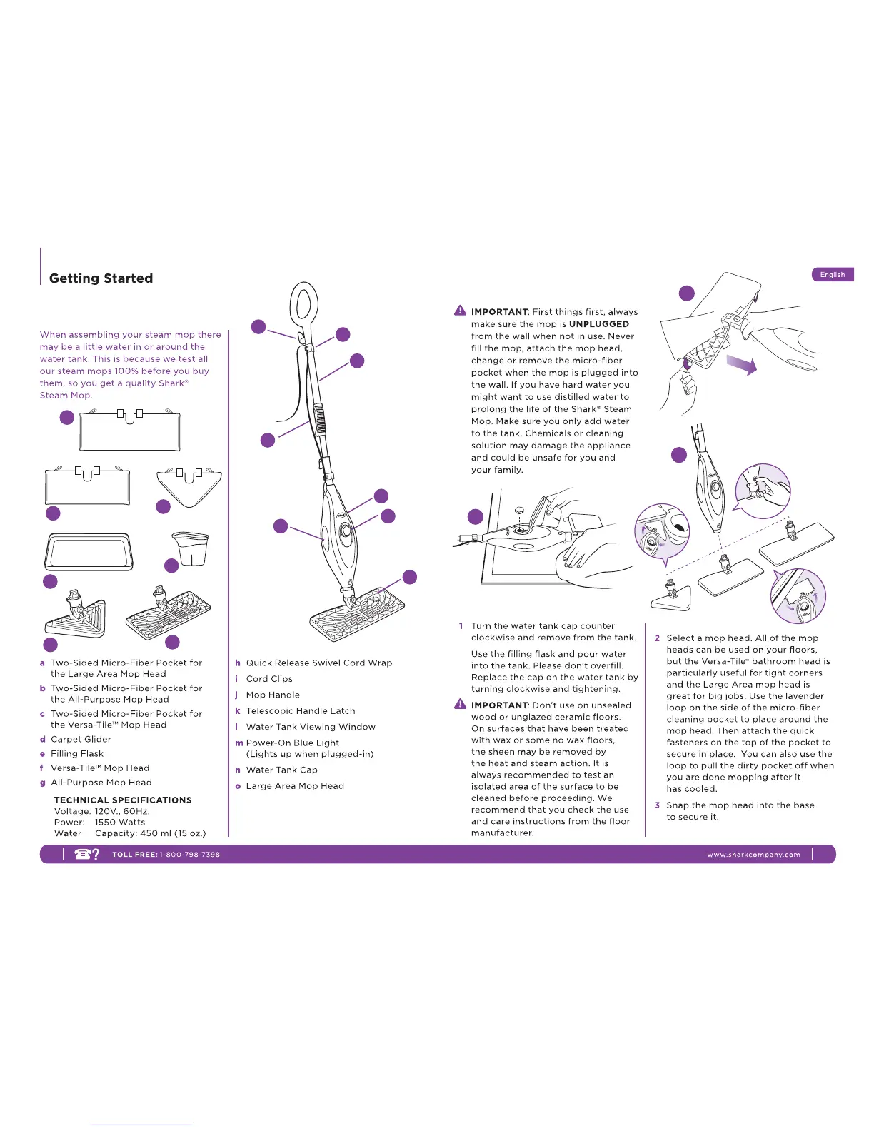 Shark S3501W - Getting Started; TECHNICAL SPECIFICATIONS