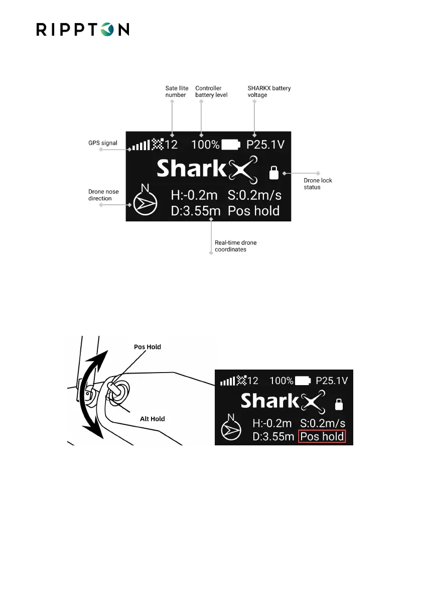 Notice when both joysticks are centered, if on Pos Hold mode, the drone will hover at