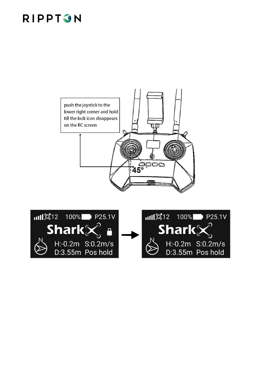 start rotating, which means the drone has been unlocked. Slowly push the left