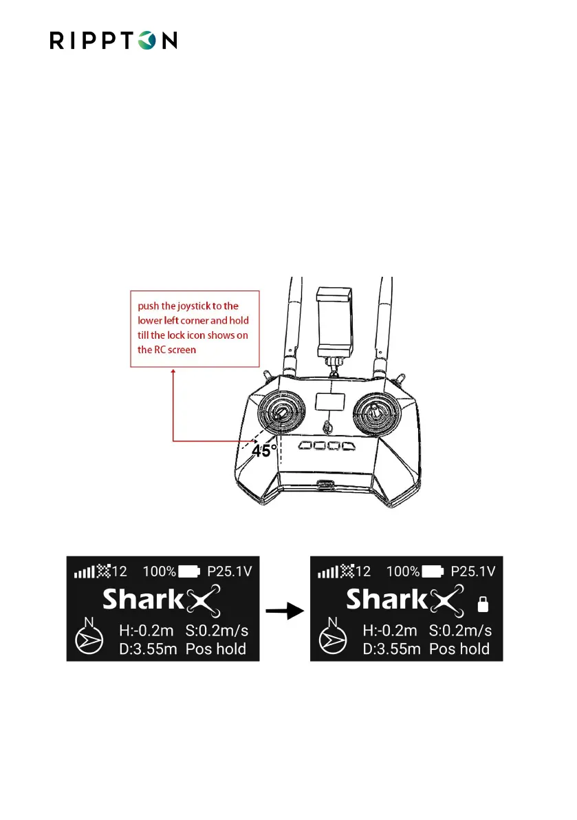 4.10.2.Push the left joystick down gently. The SharkX will descend to the height of 5