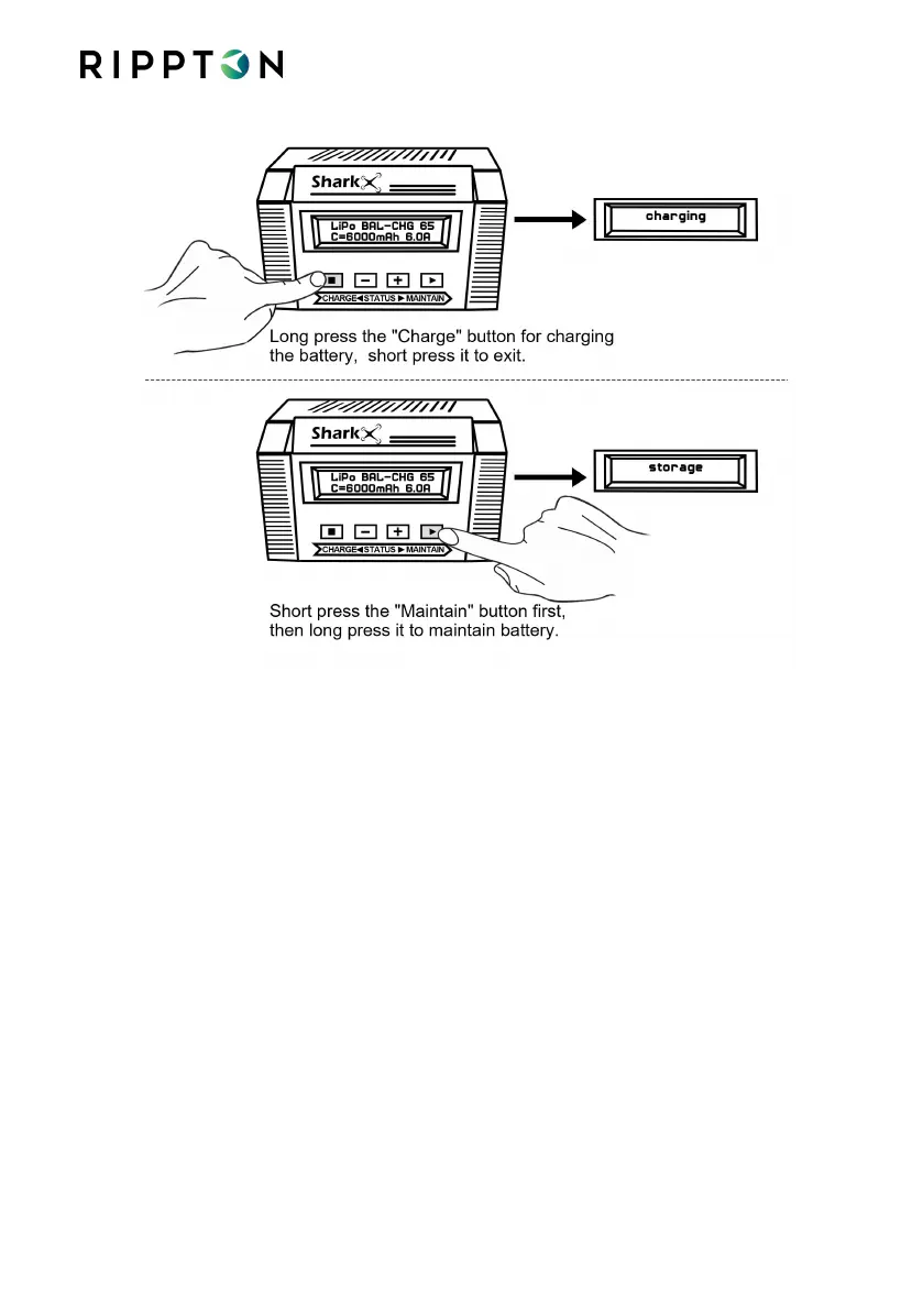 battery from the battery-life loss. When ‘storage’ appears on the screen, the charger