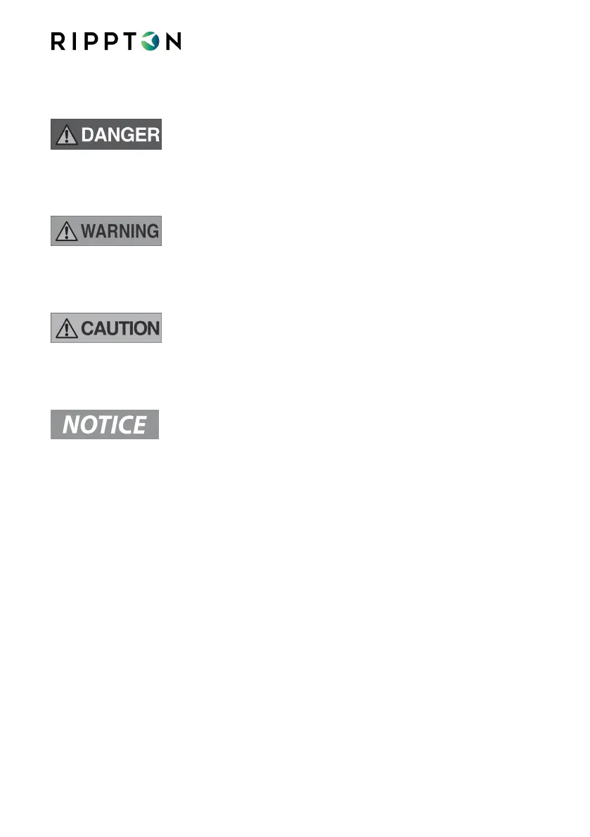 Danger indicates a hazard with a high level of risk which, if not avoided, will result in