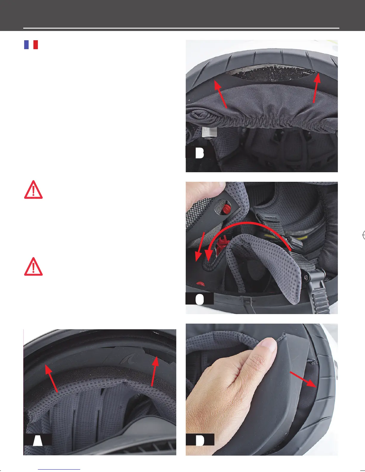 - Enfiler la partie arrière de la coiffe (Fig. B).