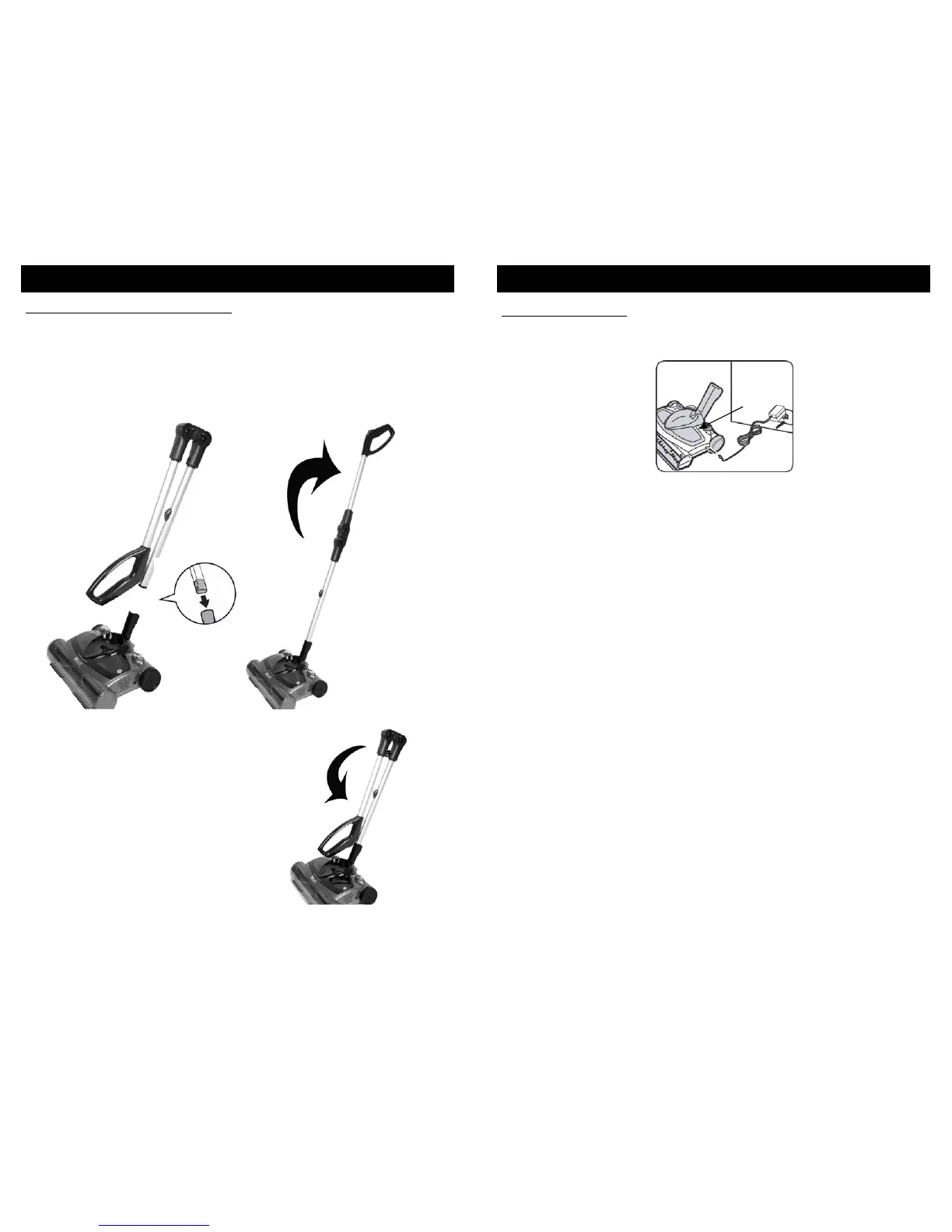 1. To assemble your sweeper, push the handle into the base. It will snap into place
