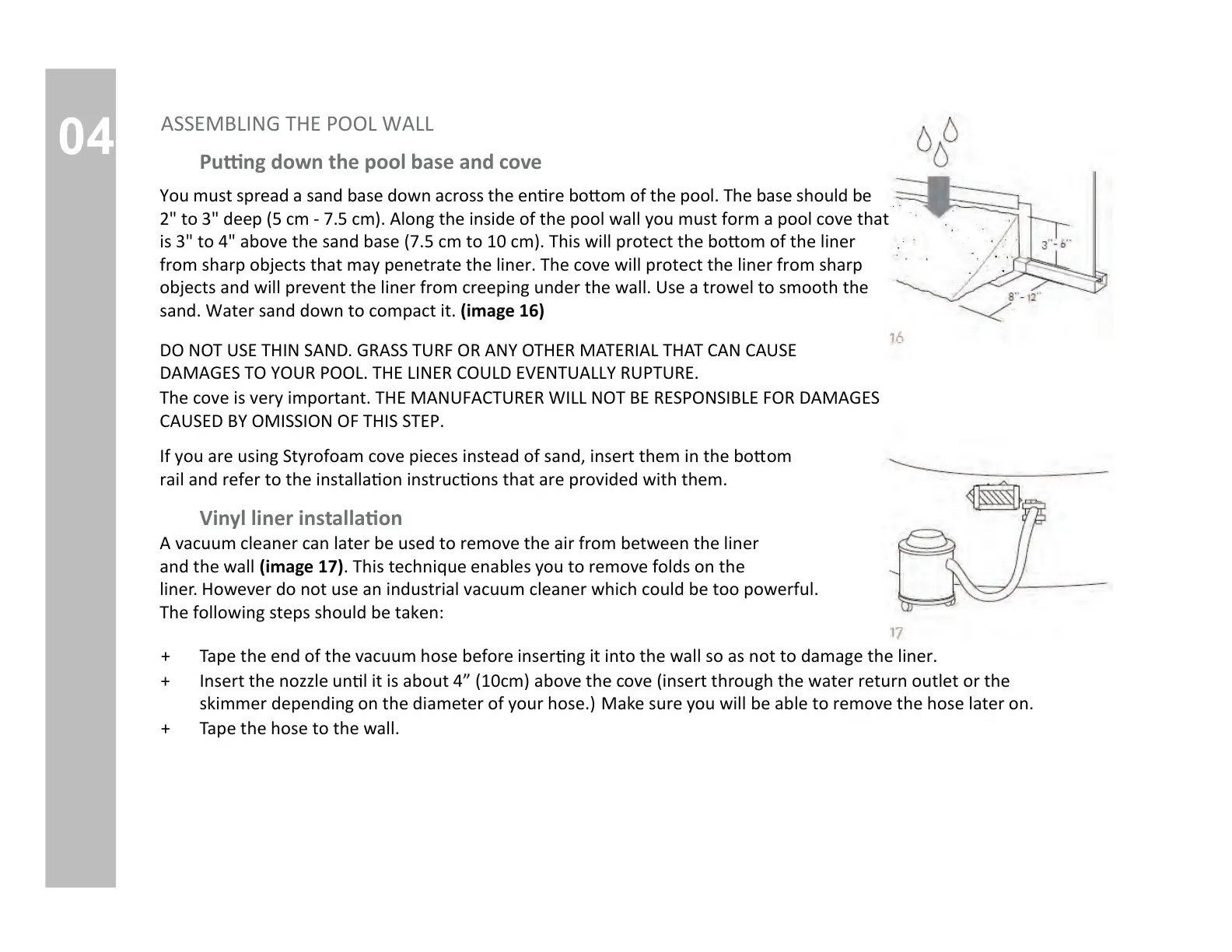 DAMAGES TO YOUR POOL. THE LINER COULD EVENTUALLY RUPTURE.