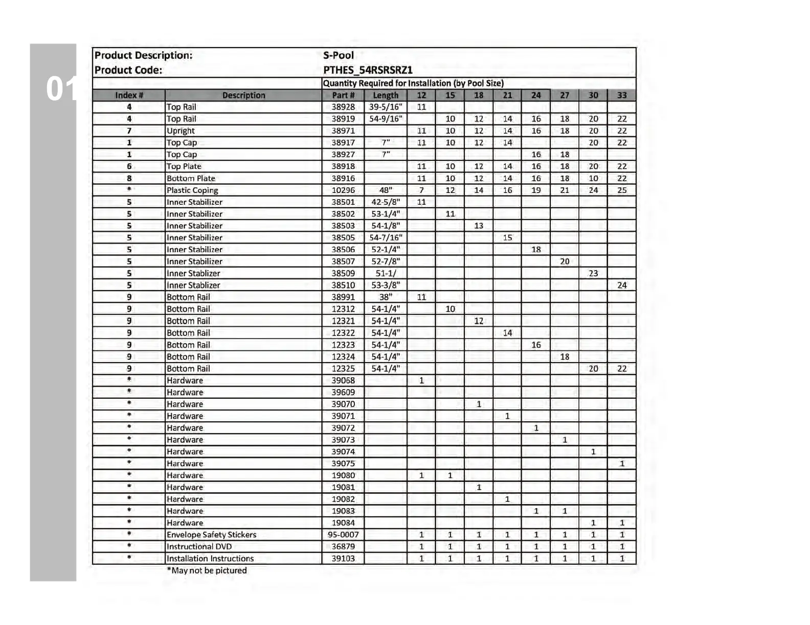 Descrip on Part # 15’ 18’ 21’ 24’ 27’ 30’ 33’