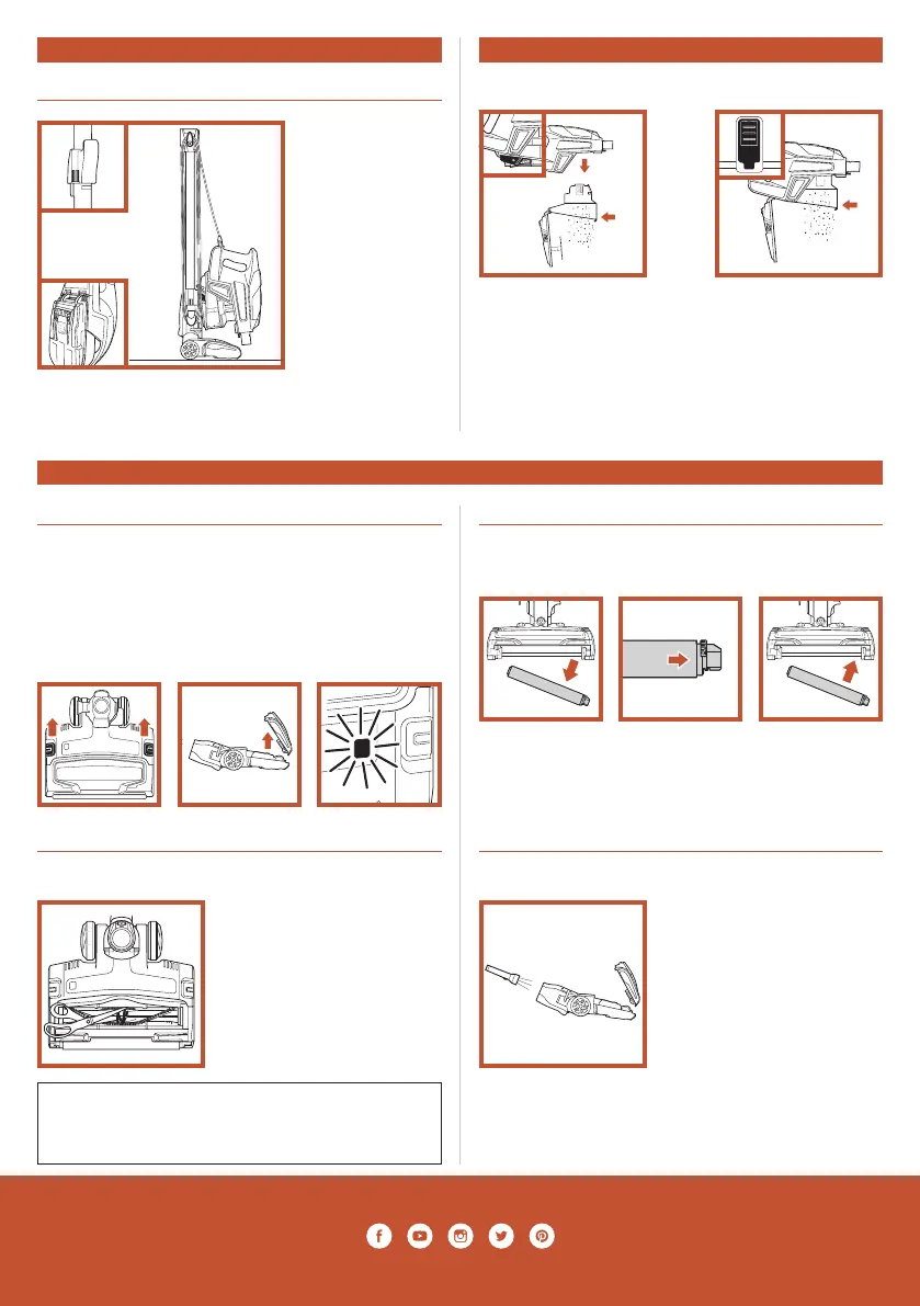 2. To close the brushroll garage, insert the 3 tabs on top of