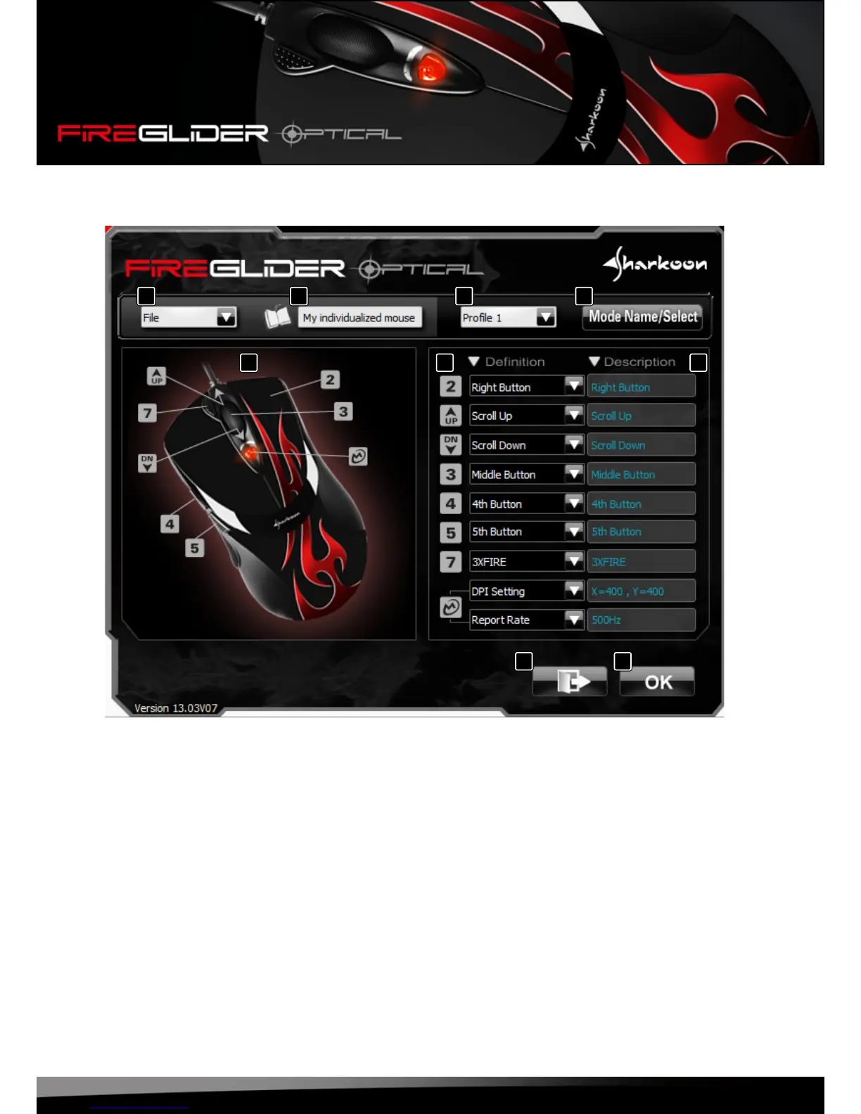 E – Buttonconguration:eachmousebuttoncanbeassigneddifferentfunctions,selectthesefunctions