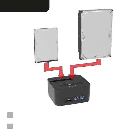 Gently insert your 2.5" or 3.5" HDD/SSD into the hard drive bay of the device.