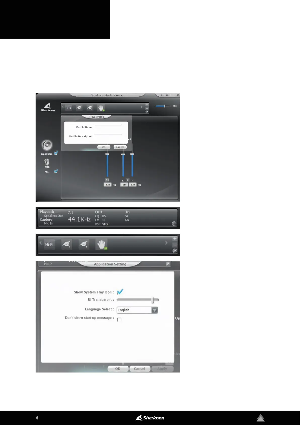 Configure dierent settings and functions for the RUSH ER40 with the Sharkoon Audio Center. For example, volume
