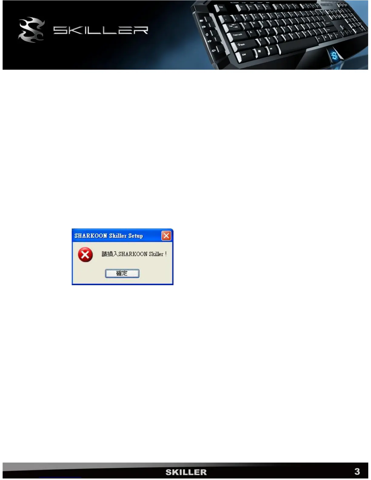 3.4當鍵盤USB連接線拔除時, 在電腦桌面右側底部工作列SHARKOON Skiller圖示也會