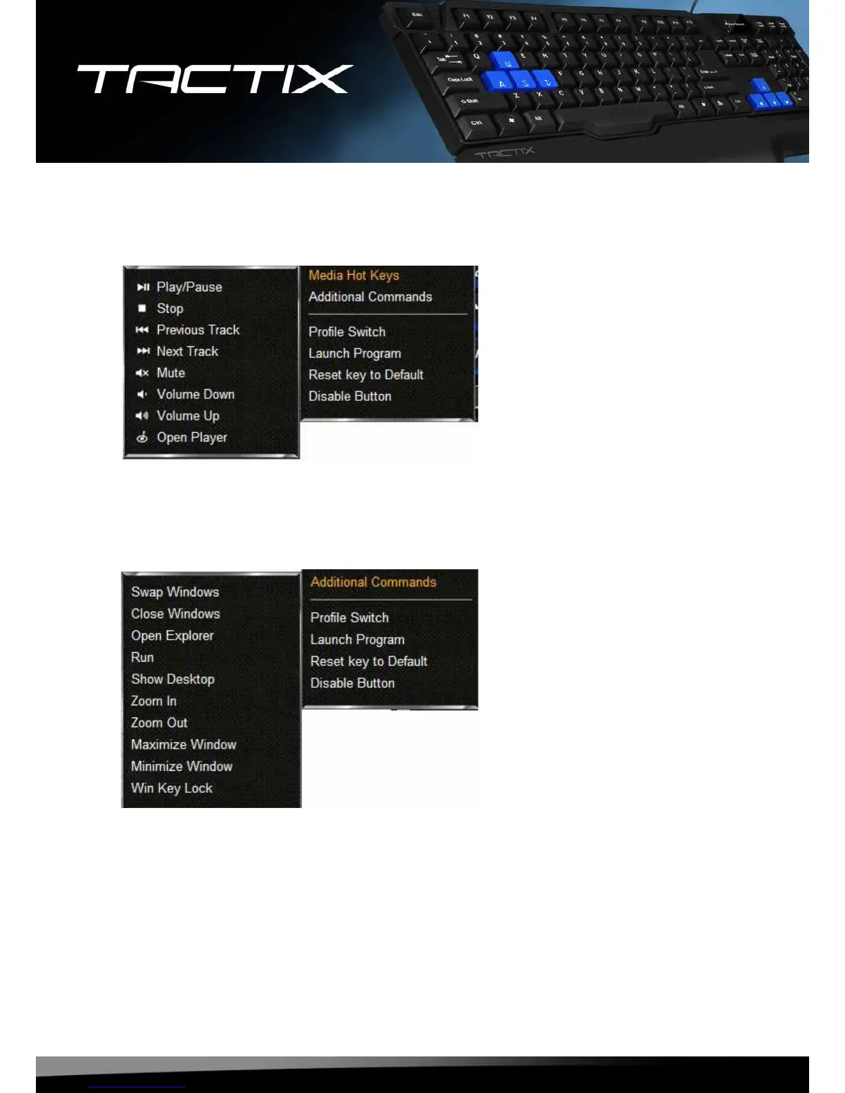 Eachkeycanbeassignedanadditionalcommandusingthecongurator: