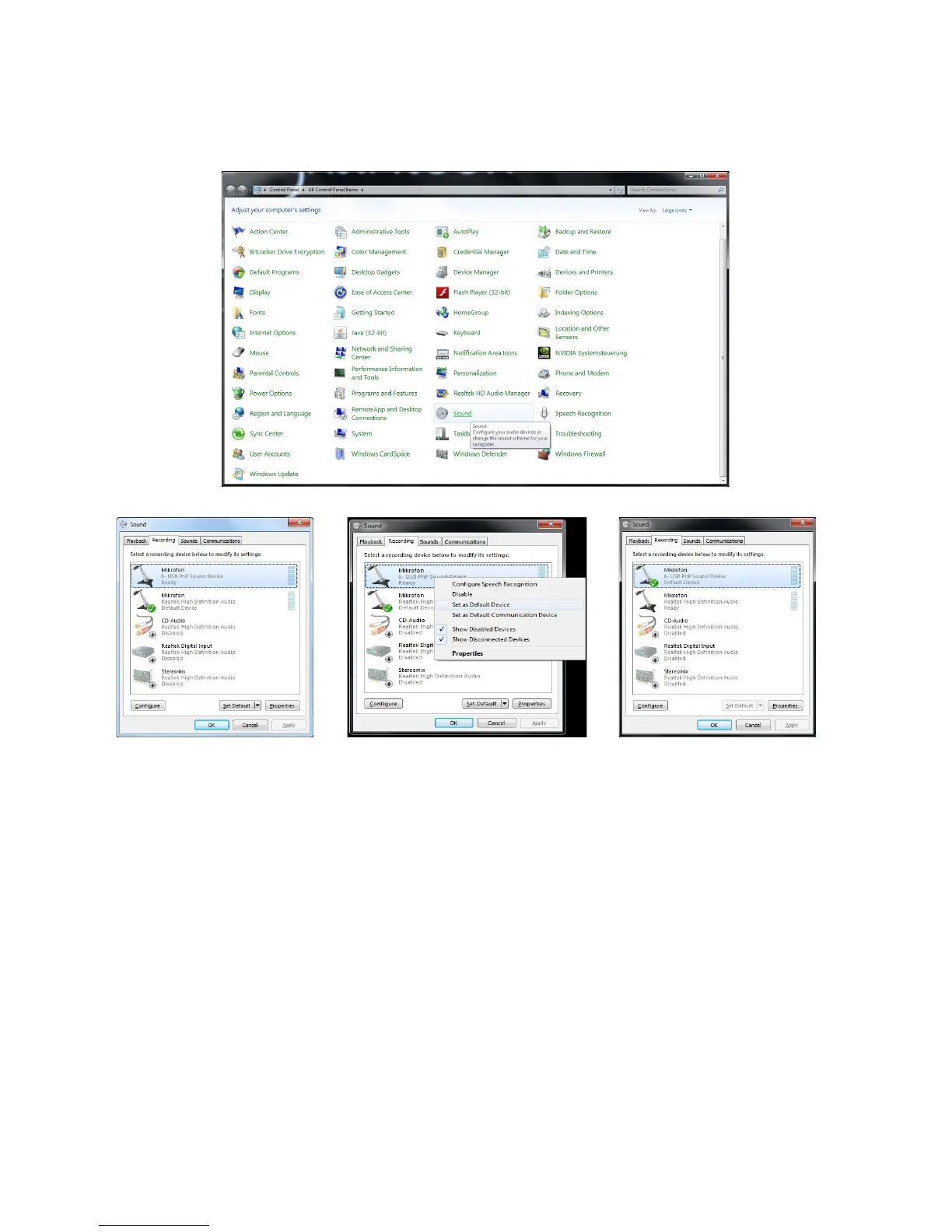 Control Panel > All Control Panel Items > Sound > Recording > Right-click “USB PnP