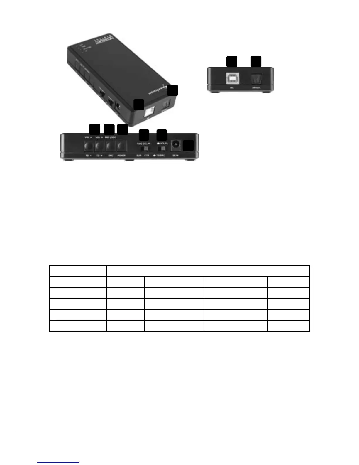 D – On / off button for Pro Logic resp. Dynamic Range Control (DRC)