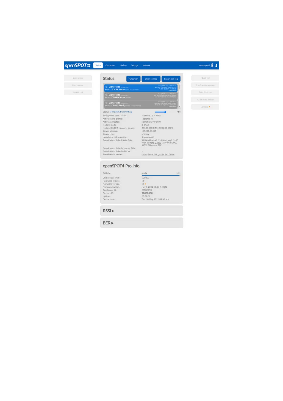 The openSPOT4's hostname is displayed at the right of the page header. The