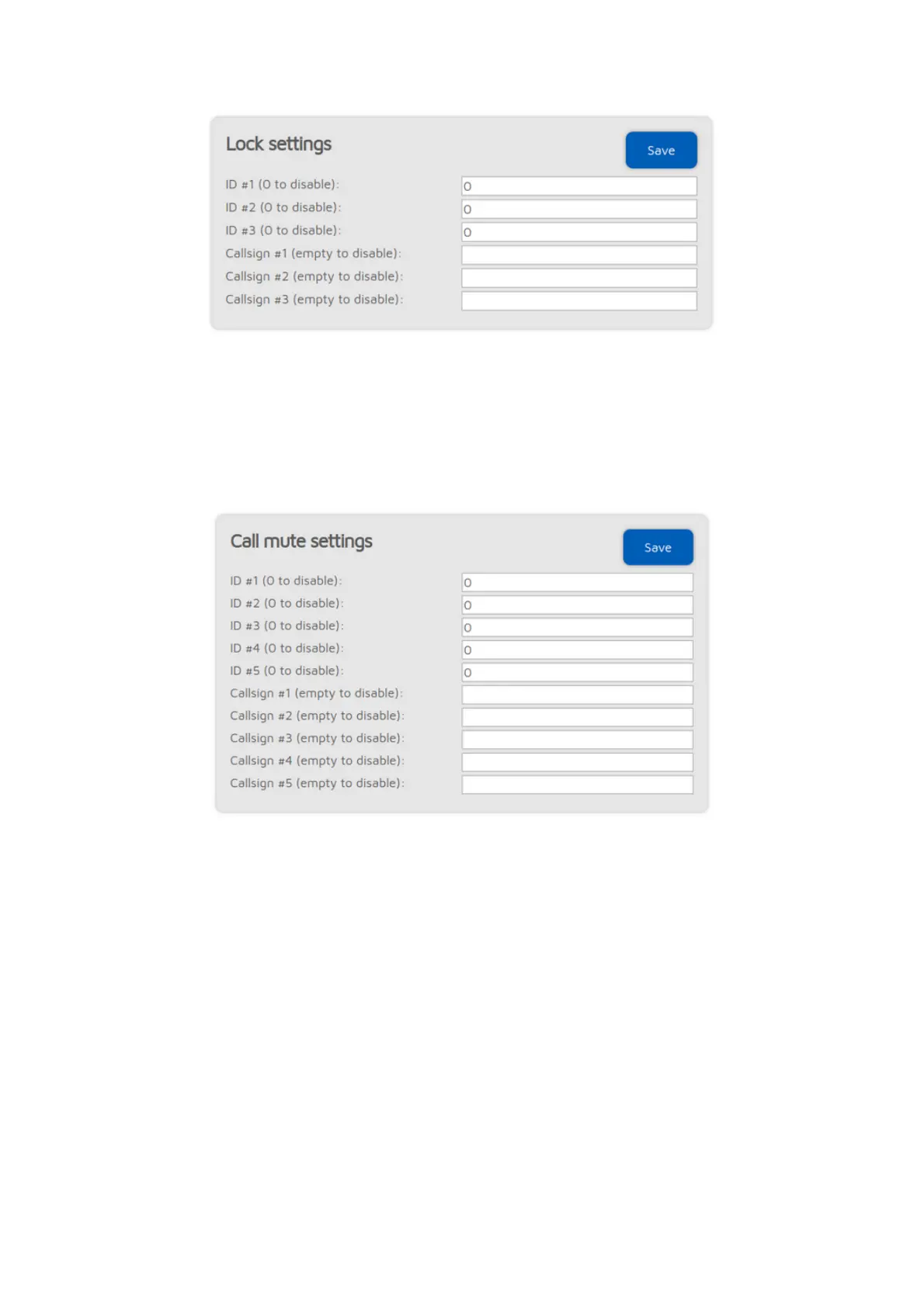 These settings allows you to mute calls coming from the given IDs and/or