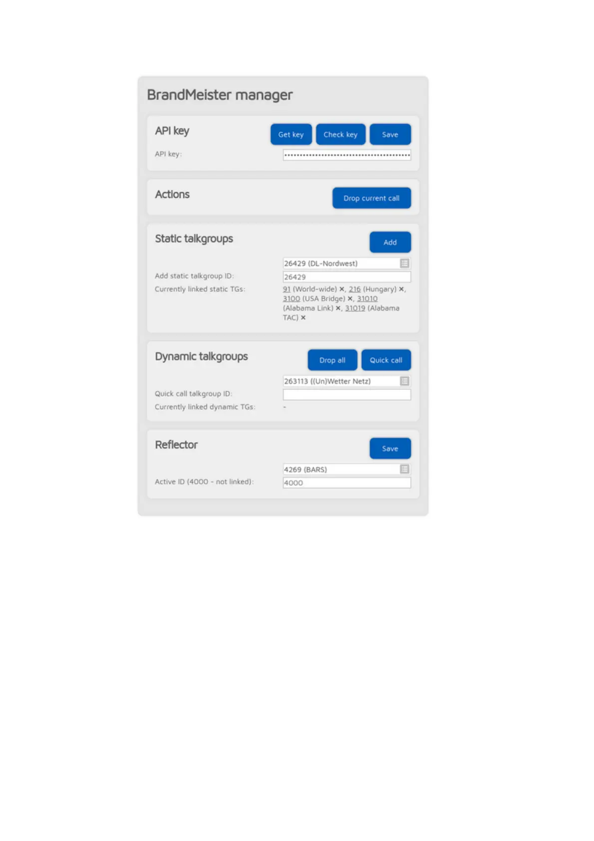 A BrandMeister API key is needed to use the BMM. You can get the API key by