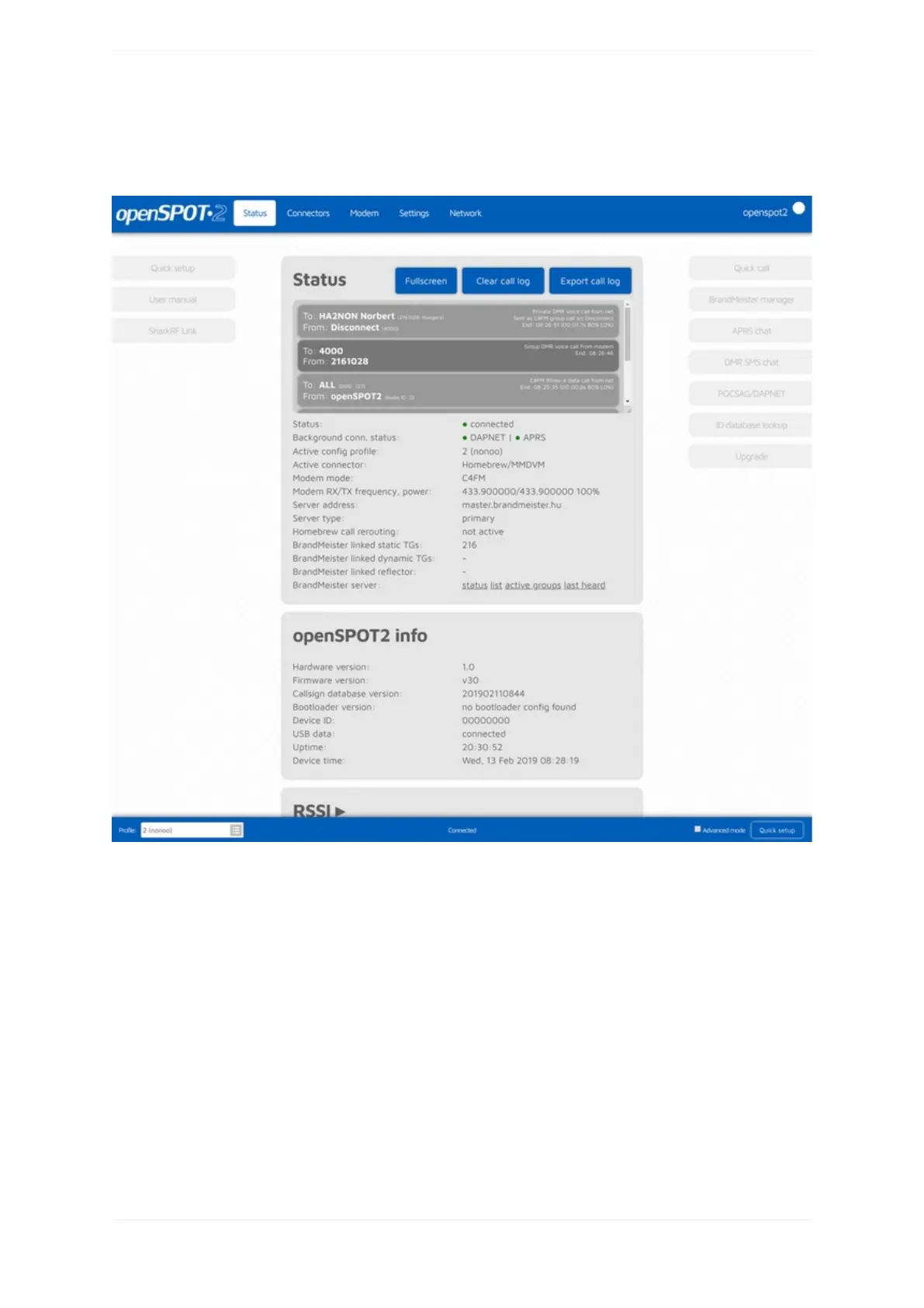 TheopenSPOT2'shostnameisdisplayedattherightoftheheader.Thedevice'sIPaddressisdisplayedby