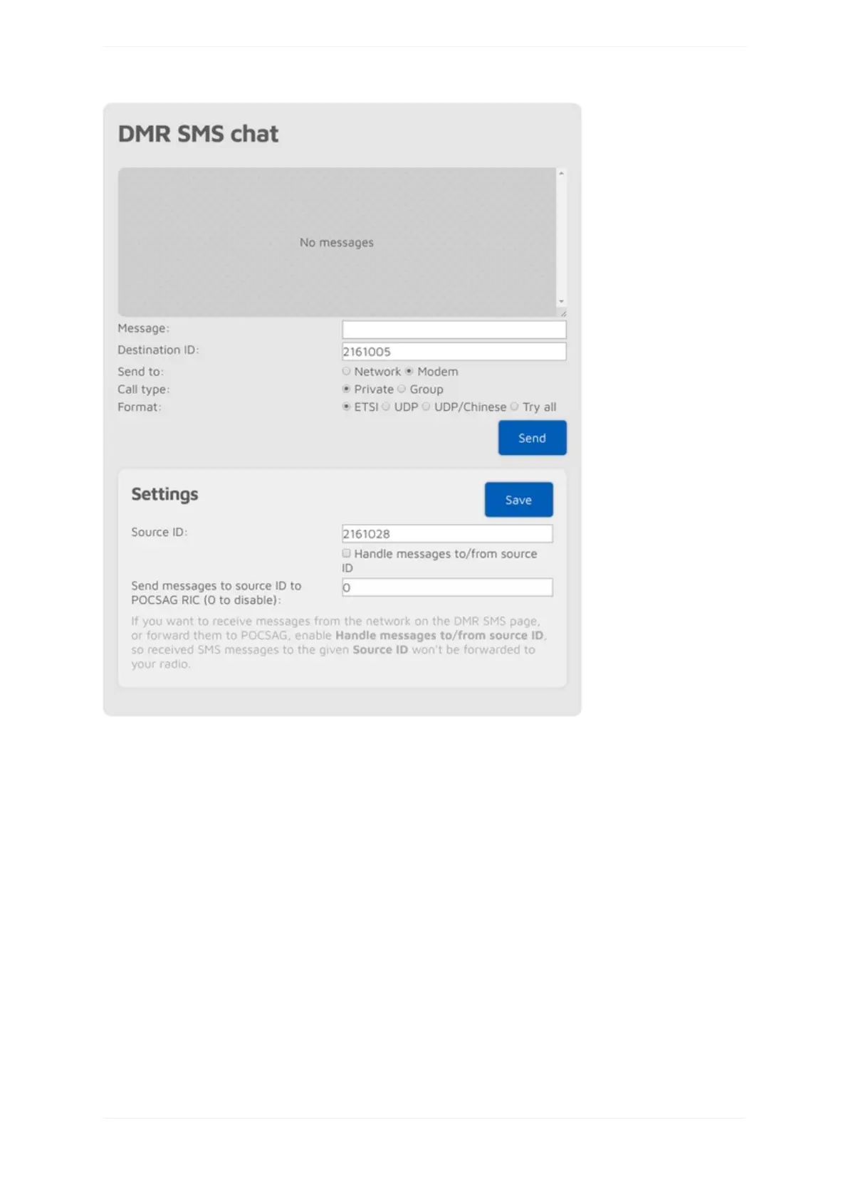 IfyouwanttosendreceivedDMRSMSmessagesasPOCSAGmessages,checktheHandlemessagesto/from