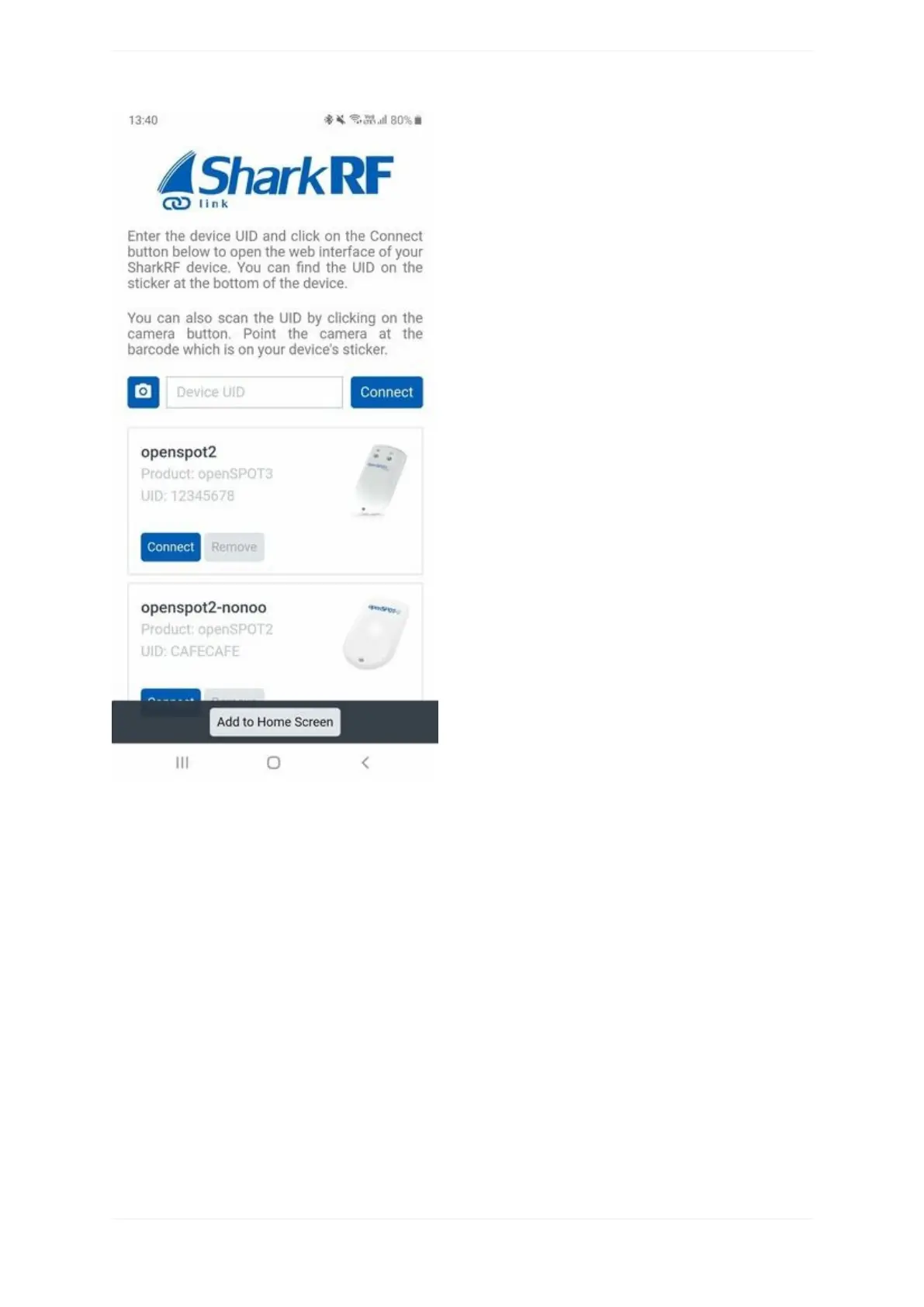 YoucanalsoaddtheSharkRFLinkapplicationtoyourphone'shomescreenbyclickingontheAddtoHome