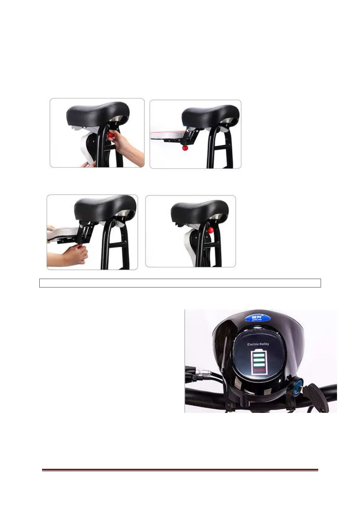 Rozložení: Jednou rukou zatáhněte červenou páčku dozadu a druhou rukou zvedněte sedadlo vzhůru