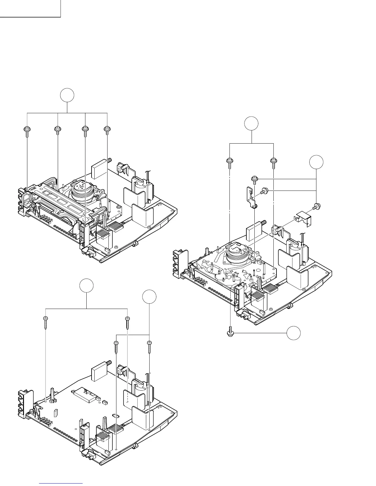 7. Remove the 3 mechanism chassis fixing screws, and detach the mechanism chassis from the main PWB.