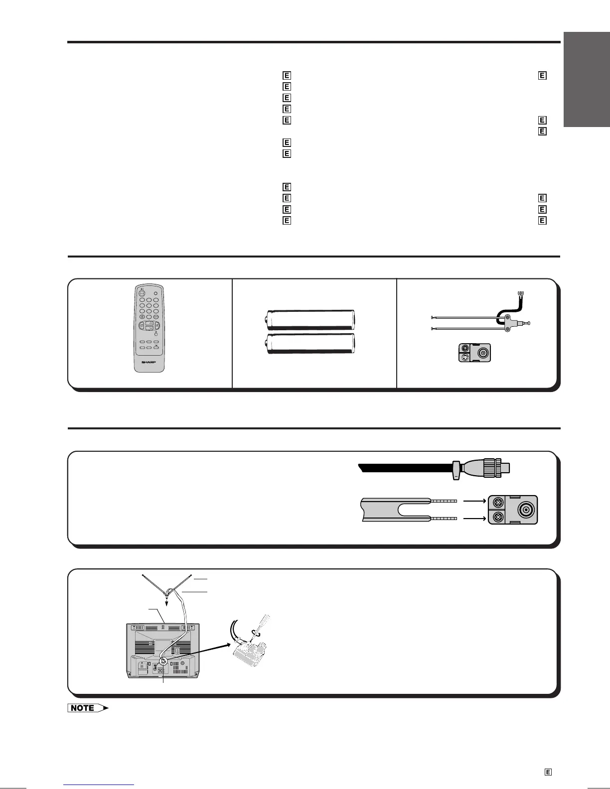 • Remove the power cord from the electrical outlet before connecting the antenna to the rear of the TV set.